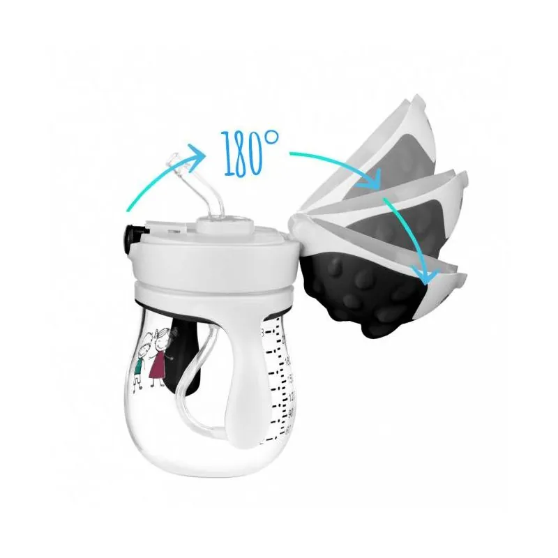 Nepilošs mācību krūze ar salmiņu, lieliski nodrošina, ka var dzert no jebkuras pozīcijas.