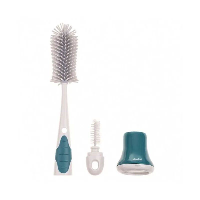 Akuku pudelīšu, krūzīšu un knupīšu silikona birste ar birstīti, pelēks/tirkīzs, A0511