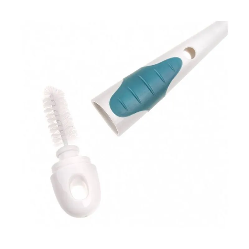Pudeļu tīrīšanas birste ar mīkstiem silikona sariem nodrošina, ka pudeles un trauki tiek tīrīti tīri un nesaskrāpējot virsmas. Pareizi profilēts uzgalis sasniedz grūti pieejamas vietas, un ērts neslīdošs rokturis nodrošina stabilu saķeri. Ir spirālveida uzgalis knupīšu tīrīšanai.