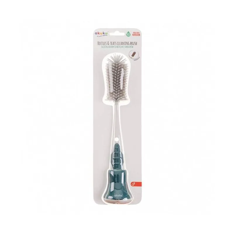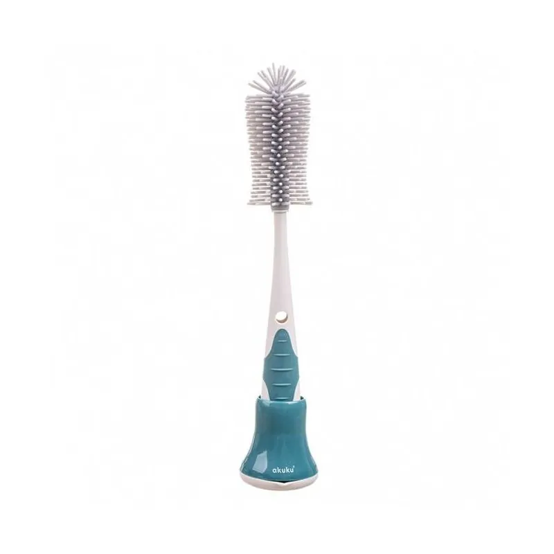 Akuku pudelīšu, krūzīšu un knupīšu silikona birste ar birstīti, pelēks/tirkīzs, A0511