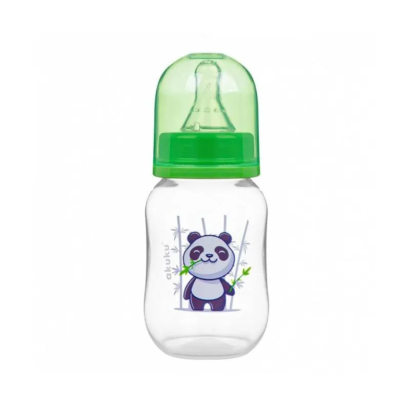 Akuku barošanas pudele 125 ml ar silikona knupi, А0104_Green