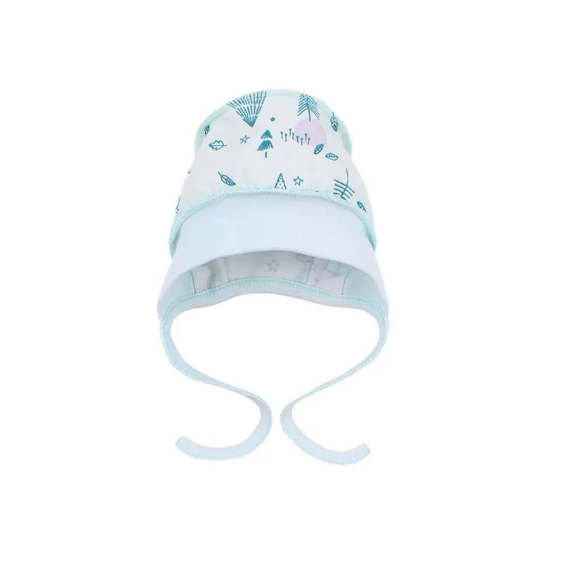 Biezāka kokvilna cepurīte zīdaiņiem, ar aukliņām. Apgrieztas šuves.