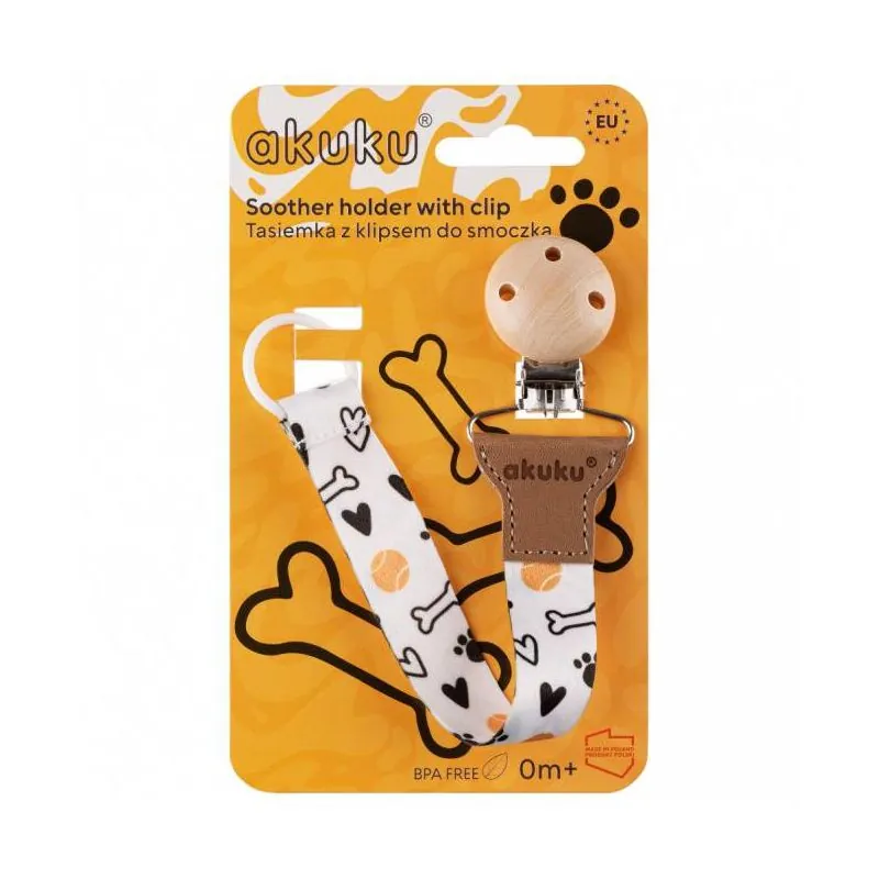 Veic aizsargājošu lomu, jo aizsargā knupīti no pazaudēšanas, nokrišanas uz zemes un sasmērēšanās.Tas būs nepieciešams gan mājās, gan pastaigu vai ceļojumu laikā.Kulons ir izgatavots no izturīgas lentes.Tam ir atbilstošs aizdare, kas izgatavota koka saspraudes veidā.Viegls un ātrs stiprinājums.Unikāla bērnu apģērbu rotājums.Knupītis vienmēr ir rokas stiepiena attālumā.Piemērots jebkuram knupītim ar rokturi un bez tā. Lieliski pielīp pie apģērba un nebojā materiālu.Visa kulona garums ir 24 cm.Izstrādājums atbilst Eiropas standartam PN EN 12586.