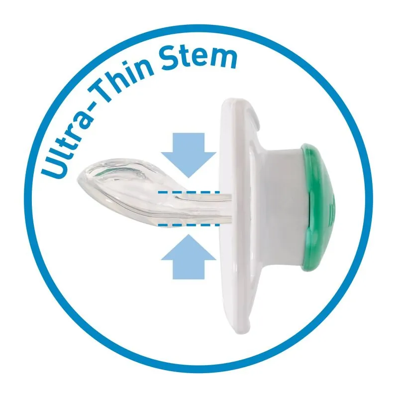 Mīksts, nesaraujošs, ar patentētu gaisa kanālu, kas samazina spiedienu uz aukslējām zīdainim zīžot. Izstrādāts bērnu zobārsta. Ļoti plāns, minimāli ietekmē zīdaiņa muti, samazina nepareiza sakodiena iespējamību. Piemērots mutes attīstībai un mēles pozīcijai. Bez bisfenola BPA