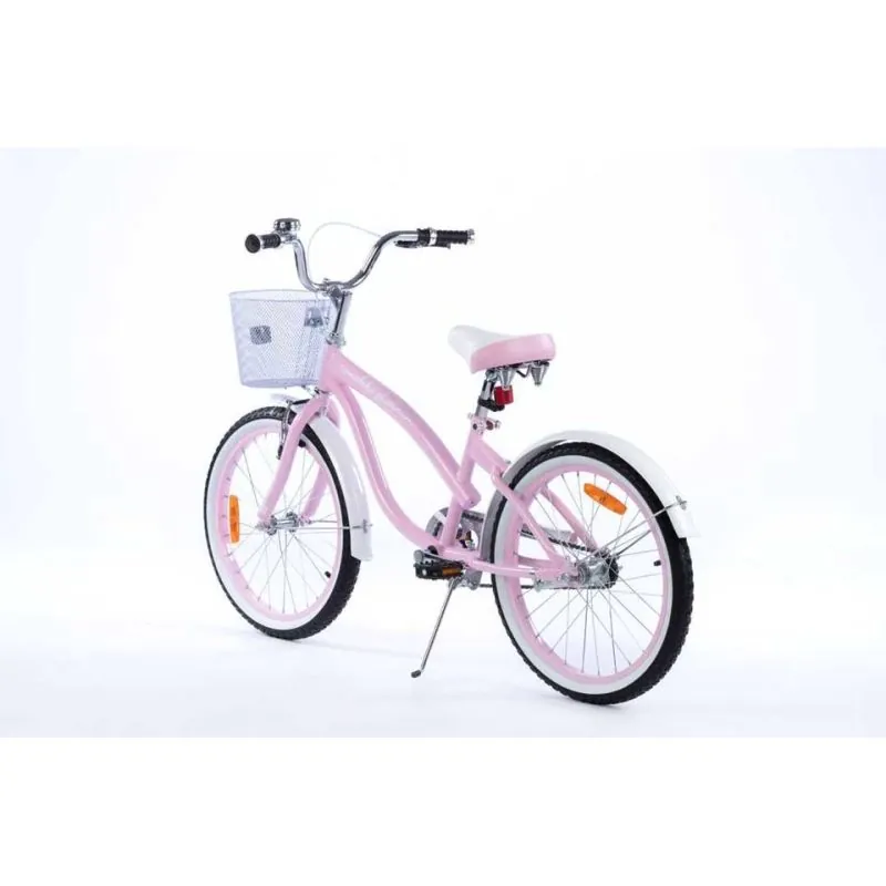Kvalitatīvs velosipēds ar 20 collu riteņiem.Izgatavots no kvalitatīviem materiāliem, ievērojot augstākos kvalitātes un drošības standartus. Velosipēds lieliski piemērots braucieniem pilsētā un ārpus tās.Plata tērauda rāmis.Neslīdoši, gumijas rokturi ar sānu aizsardzību, lai, tuvojoties sienai, nesavainotu rokas.Regulējams stūres augstums.Tērauda aploki.Riteņu izmērs 20".Riepas ar dziļu protektoru, kas lieliski izmet grants akmentiņus.Regulējams sēdekļa augstums.Uz stūres ir rokas bremze, kas bremzē priekšējo riteni.Aizmugurējais ritenis tiek bremzēts, pedāļus griežot atpakaļ.Ķēde pilnībā pārklāta, lai netīrītu bērna drēbes un kājas.Uz stūres pieskrūvēts metāla groziņš.Zvans.Atstarotāji aizmugurē un uz riteņiem.