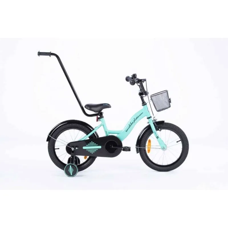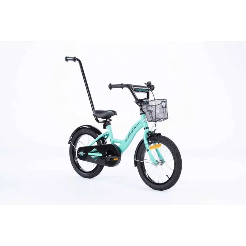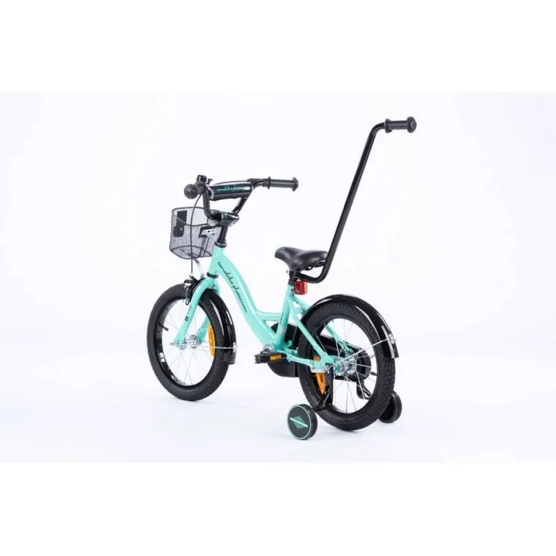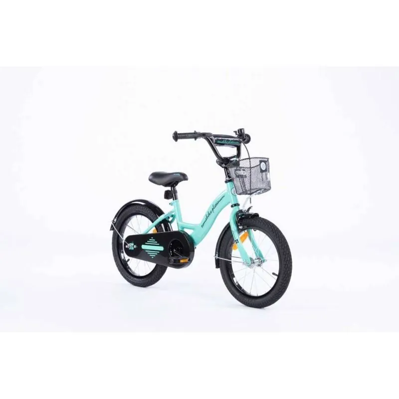 Kvalitatīvs velosipēds ar 16 collu riteņiem.Izgatavots no kvalitatīviem materiāliem, ievērojot augstākos kvalitātes un drošības standartus. Velosipēds lieliski piemērots braucieniem pilsētā un ārpus tās.Sānu riteņi ar regulēšanu - izjaucami, kad tie vairs nav nepieciešami.Plaša tērauda rāmis.Neslīdoši, gumijas rokturi ar sānu aizsardzību, lai, tuvojoties sienai, nesavainotu rokas.Regulējams stūres augstums.Tērauda aploki.Riteņu izmērs 16".Riepas ar dziļu protektoru, kas lieliski izmet grants akmeņus.Regulējams sēdekļa augstums.Uz stūres ir rokas bremze, kas bremzē priekšējo riteni.Aizmugurējais ritenis tiek bremzēts ar pedāļu atpakaļgaitu.Ķēde pilnībā pārklāta, lai netīrītu bērna drēbes un kājas.Uz stūres pieskrūvējams metāla groziņš.Zvans.Atstarotāji aizmugurē un uz riteņiem.