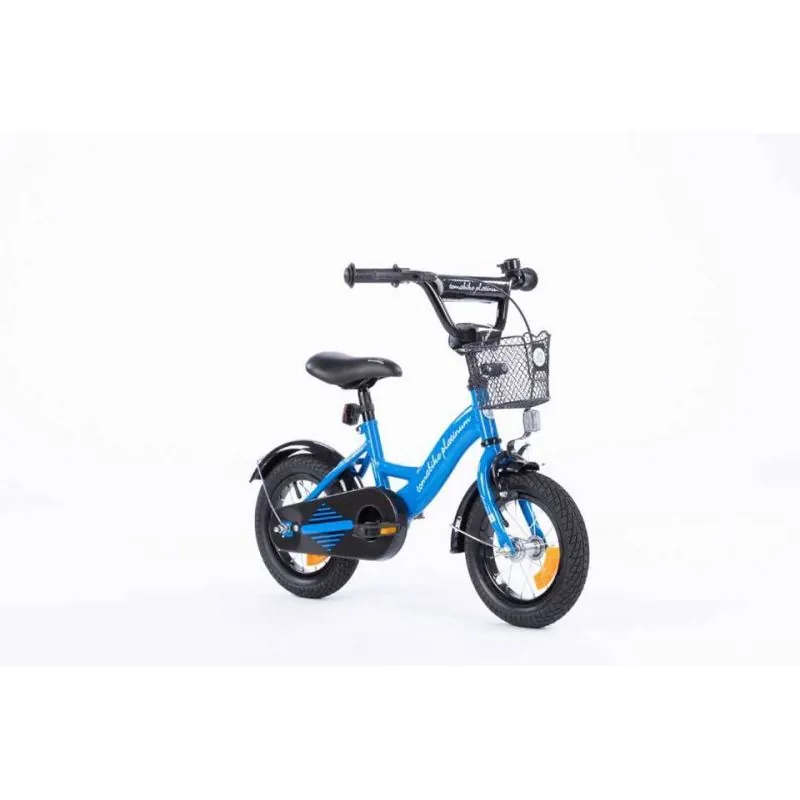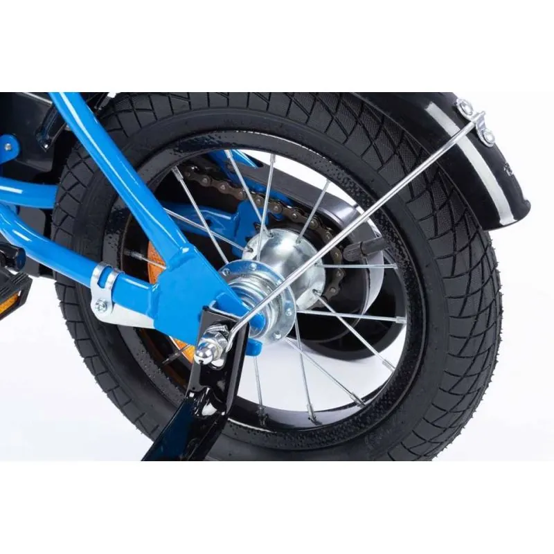 Kvalitatīvs velosipēds ar 12 collu riteņiem.Izgatavots no kvalitatīviem materiāliem, ievērojot augstākos kvalitātes un drošības standartus. Velosipēds lieliski piemērots braucieniem pilsētā un ārpus tās.Sānu riteņi ar regulēšanu - izjaucami, kad tie vairs nav nepieciešami.Plaša tērauda rāmis.Neslīdoši, gumijas rokturi ar sānu aizsardzību, lai, tuvojoties sienai, nesavainotu rokas.Regulējama augstuma stūre.Tērauda aploces.Riteņu izmērs 12".Riepas ar dziļu protektoru, kas lieliski izmet grants akmeņus.Regulējama augstuma sēdeklis.Uz stūres ir rokas bremze, kas bremzē priekšējo riteni.Aizmugurējais ritenis tiek bremzēts ar pedāļu atpakaļgaitu.Ķēde pilnībā pārklāta, lai netīrītu bērna drēbes un kājas.Uz stūres pieskrūvēts, metāla grozs.Zvans.Atstarotāji aizmugurē un uz riteņiem.