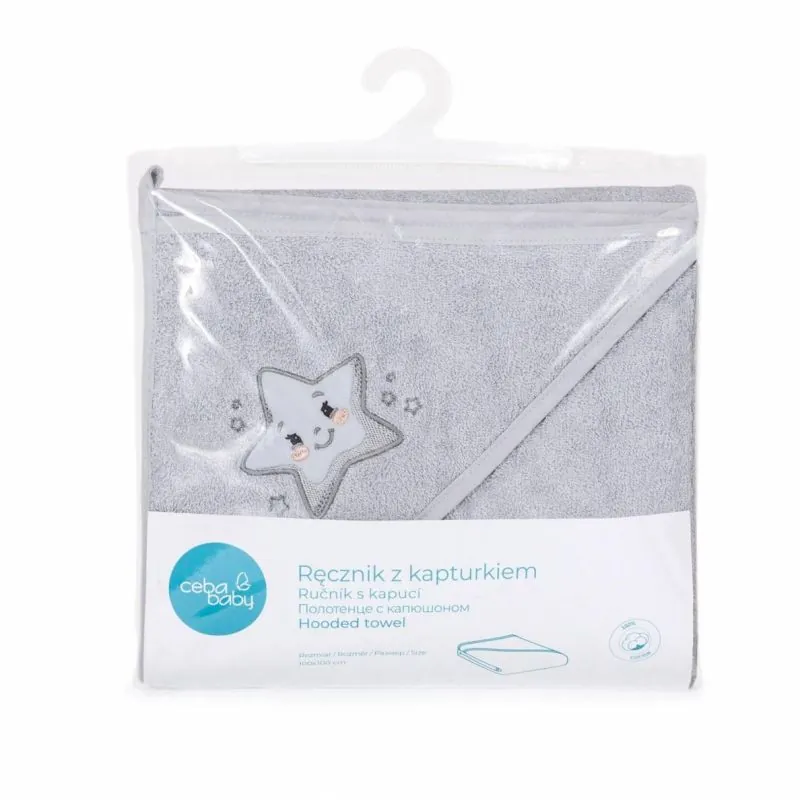 CebaBaby dvieļu ar kapuci 100x100 pelēks, zvaigzne