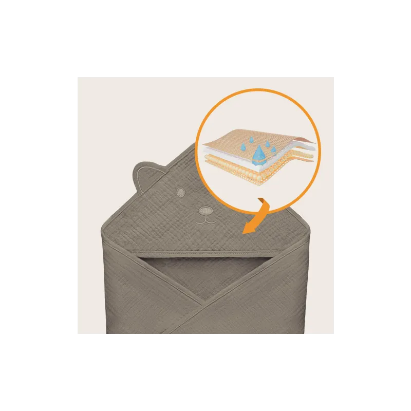 Lionelo muslininis rankšluostis su gobtuvu 80x80 cm, beige cappuccino