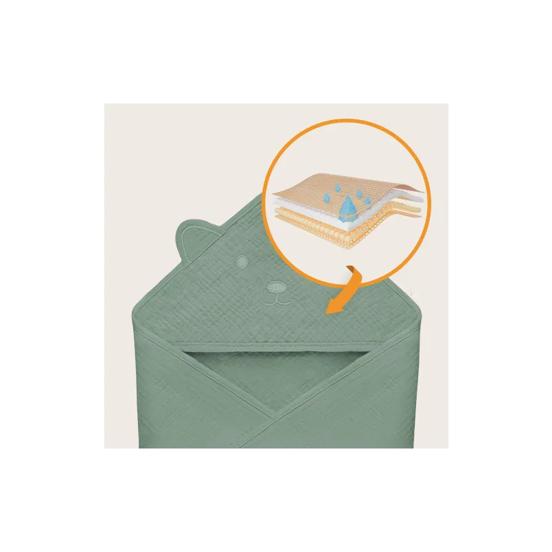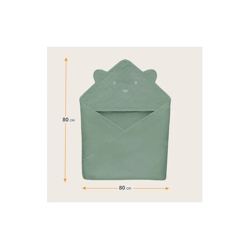 Lionelo muslininis rankšluostis su gobtuvu 80x80 cm, green forest