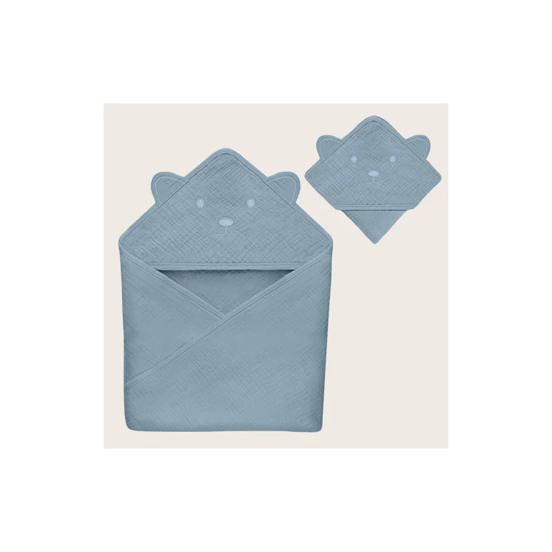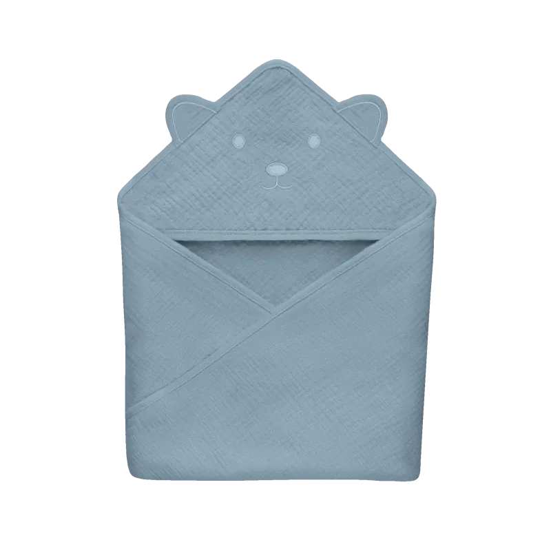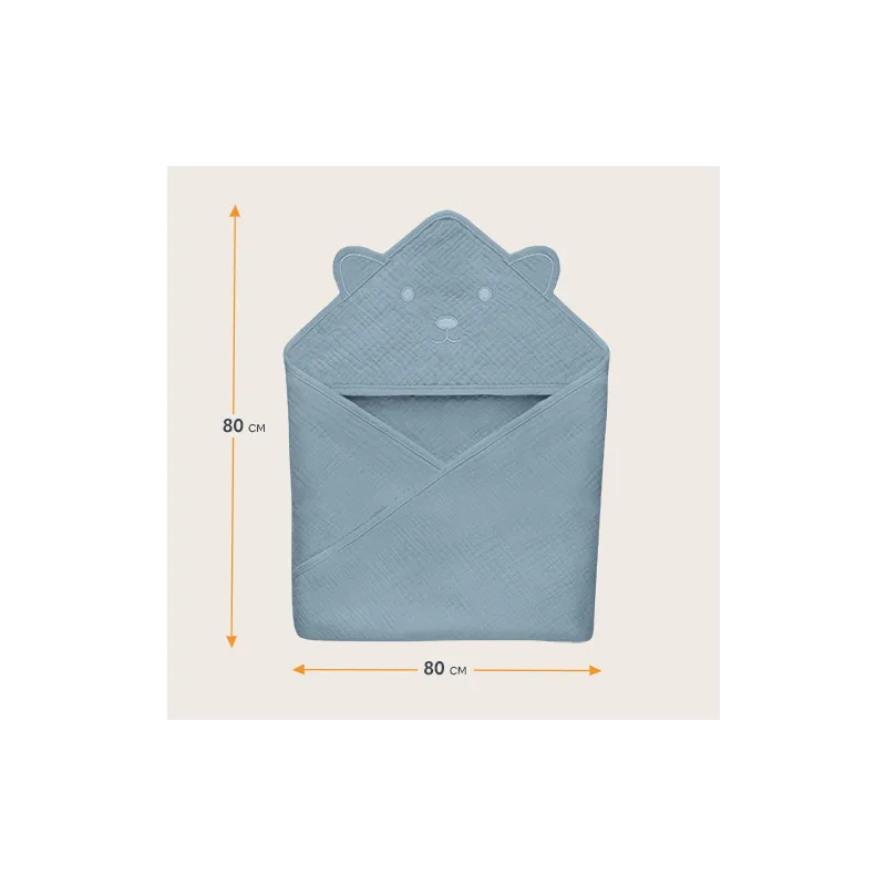 Lionelo muslininis rankšluostis su gobtuvu 80x80 cm, grey sky