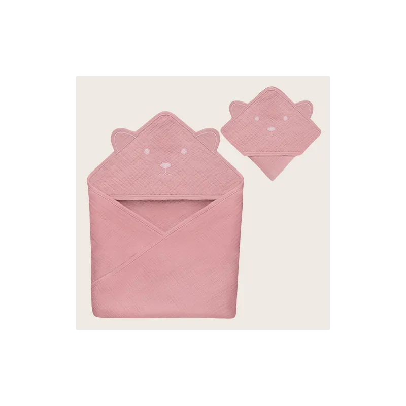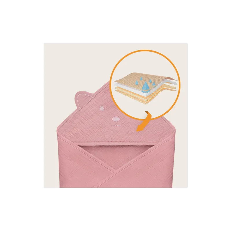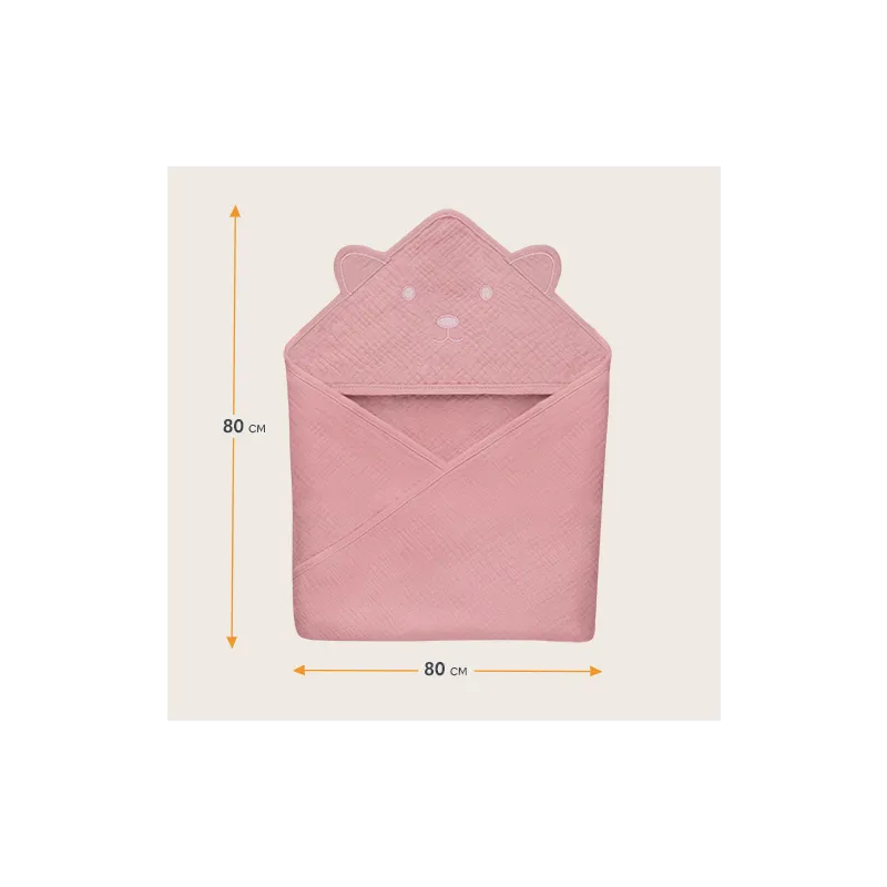Lionelo muslīna dvielis ar kapuci 80x80 cm, rozā mazulis