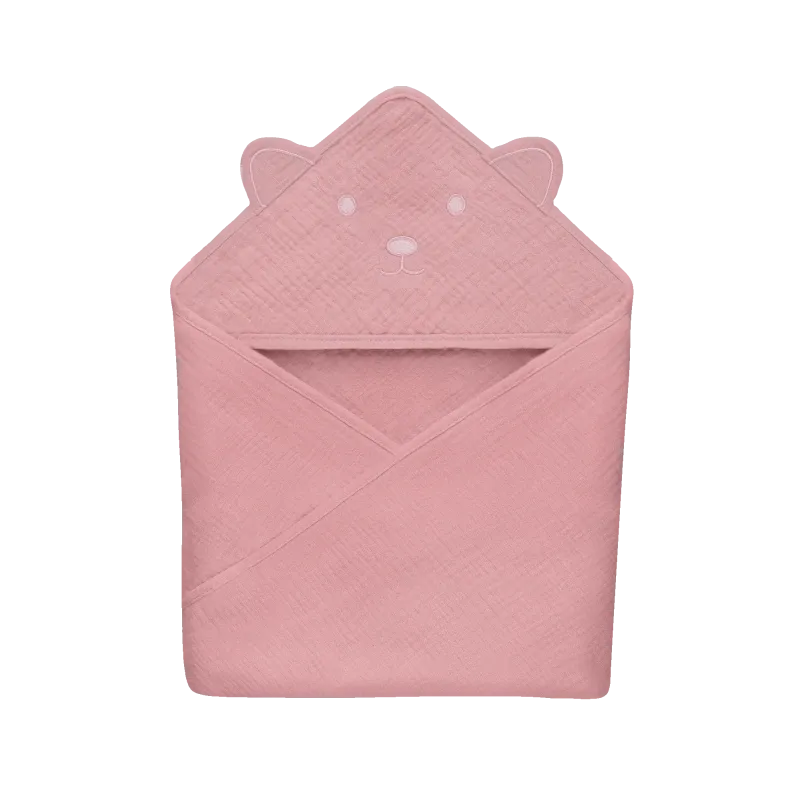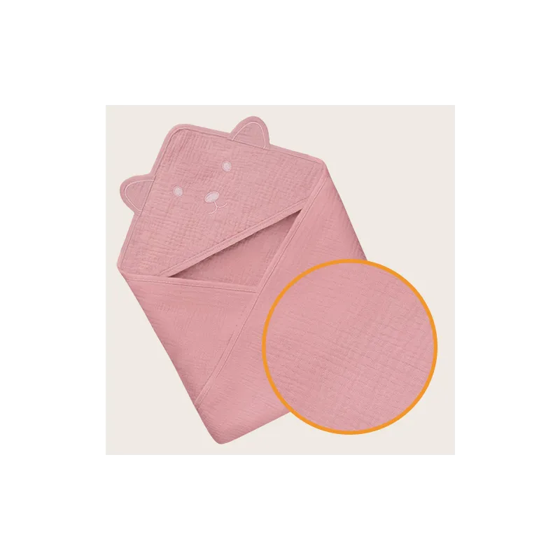 Lionelo muslīna dvielis ar kapuci 80x80 cm, rozā mazulis