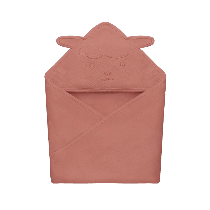 Lionelo muslīna dvielis ar kapuci 80x80 cm, sarkans koraļļu krāsā