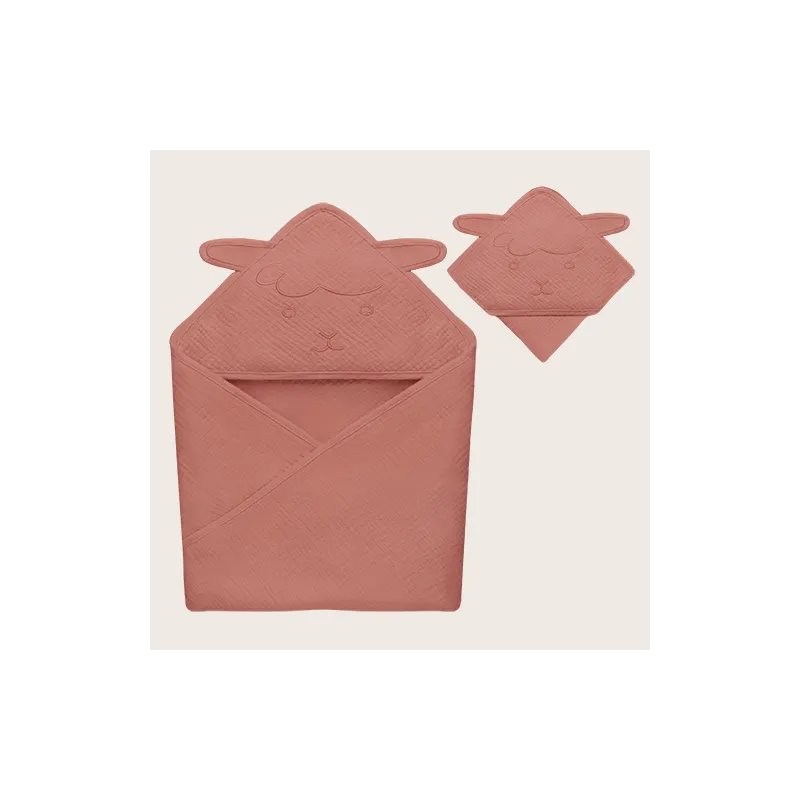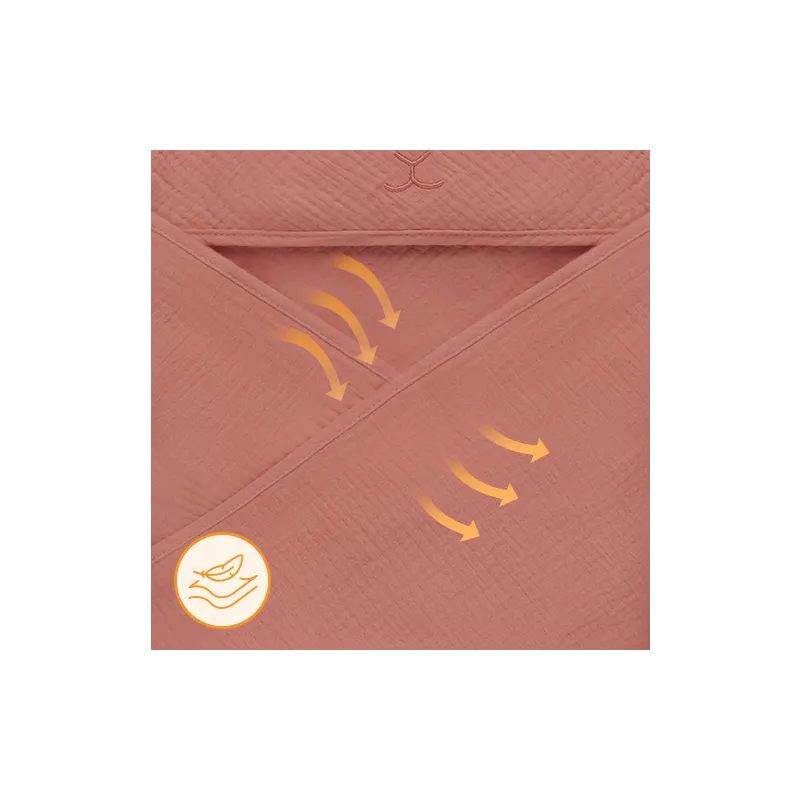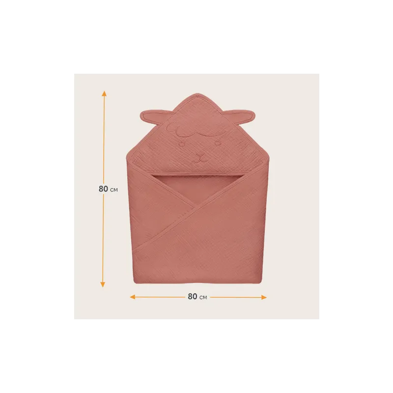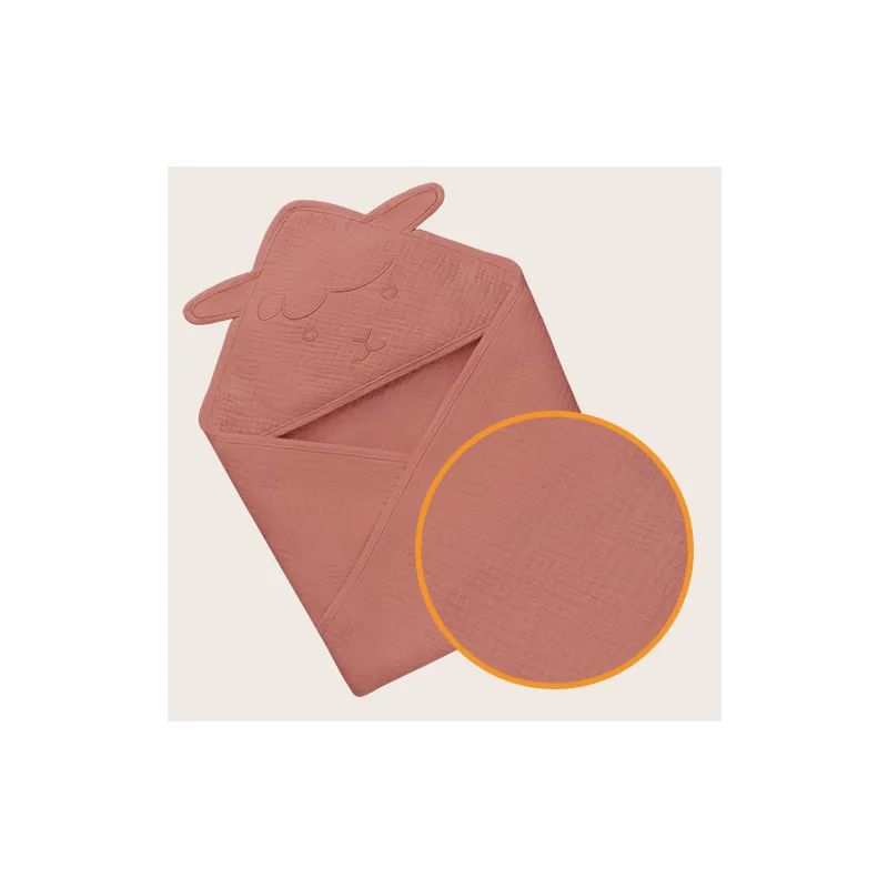 Lionelo muslīna dvielis ar kapuci 80x80 cm, sarkans koraļļu krāsā