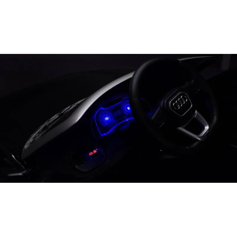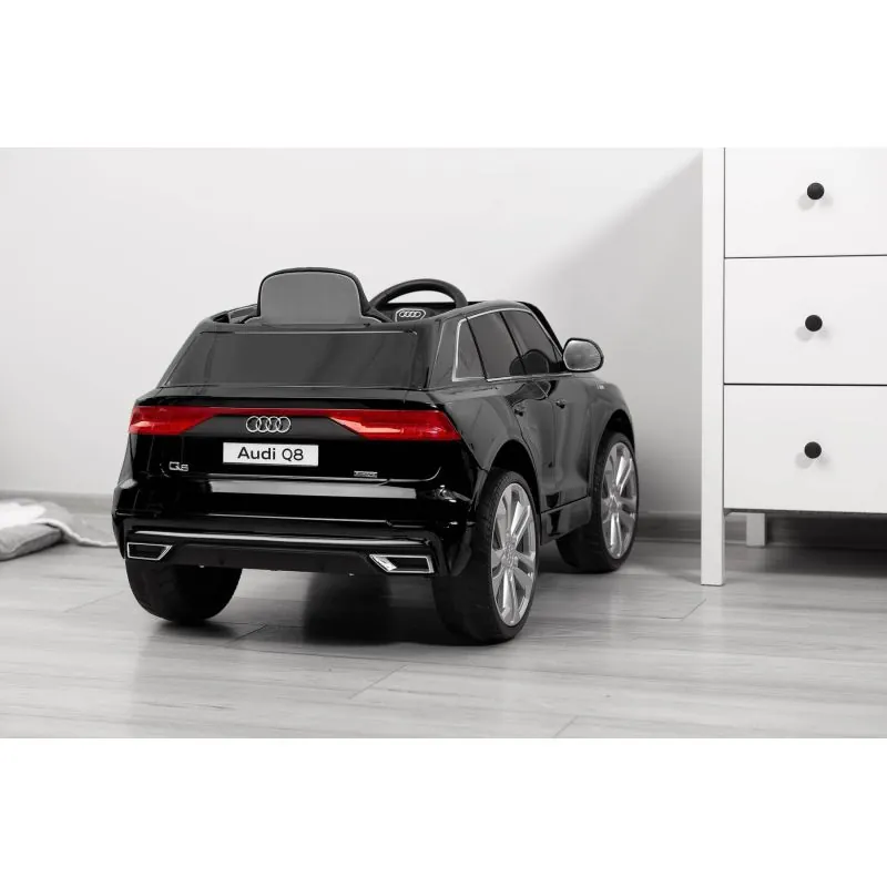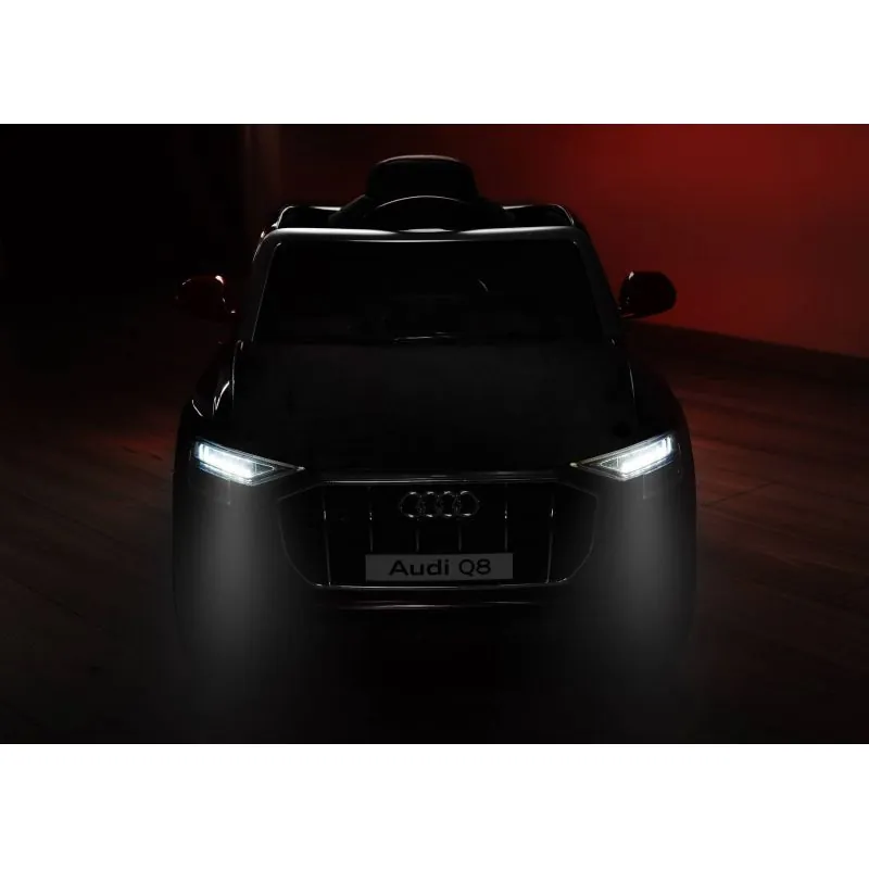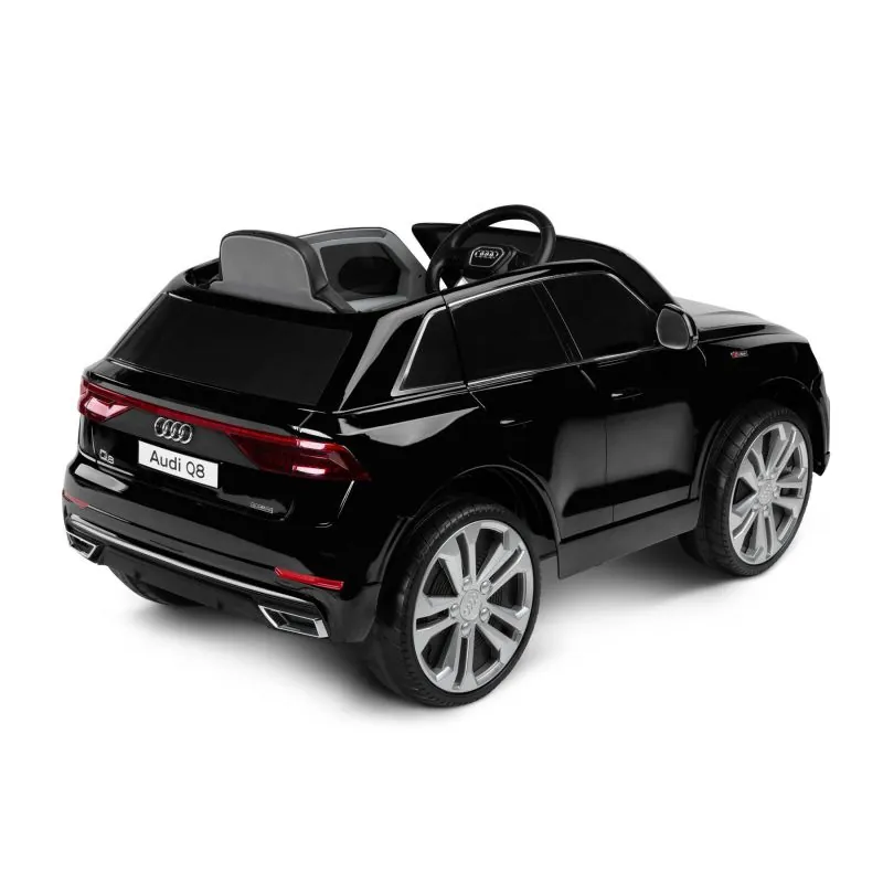 Automobilis ne tikai nodrošinās daudz izklaides, bet arī palīdzēs attīstīt mazuļa motoriskās prasmes un koordināciju. Audi licence garantē augstu kvalitāti un precizitāti. Toyz Audi Q8 ir divi 45W motori, 12V, 4Ah akumulators.Bērns var vadīt elektromobili pats vai ļaut to vadīt vecākiem ar tālvadības pulti.Atveramas automašīnas durvis.Lēnas palaišanas funkcija.Iespēja braukt uz priekšu un atpakaļ.LED lukturi: priekšā un aizmugurē.Ātrums 3-5 km/h, regulējams.Plaša vadītāja sēdvieta, pārklāta ar eko ādu.Riteņi izgatavoti no EVA putām.Viegli pārnēsājams, paslēpta roktura.Apgaismots multimediju panelis ar AUX (mini ligzda), USB, microSD.Stundas lietošana pēc pilnas uzlādes.Izņēmuma jauda, pateicoties diviem 12 V motoriem (kopējā jauda 45 W).Skaidras instrukcijas un viegla montāža.