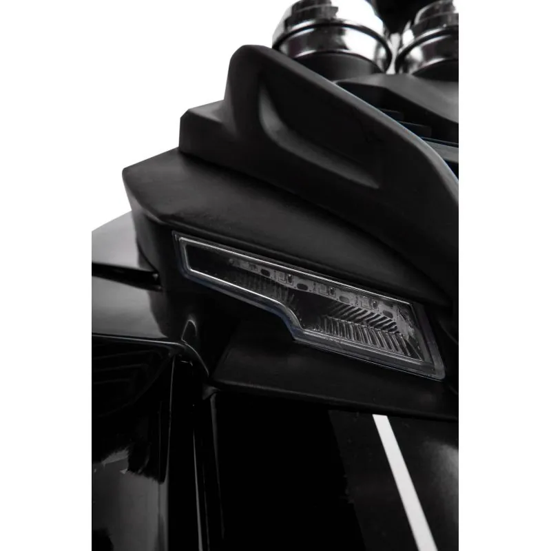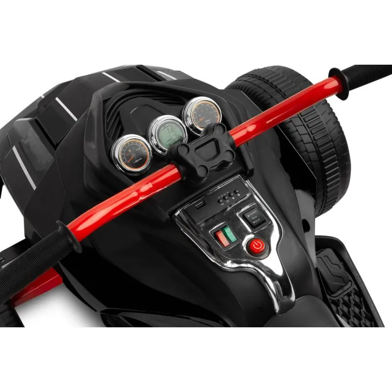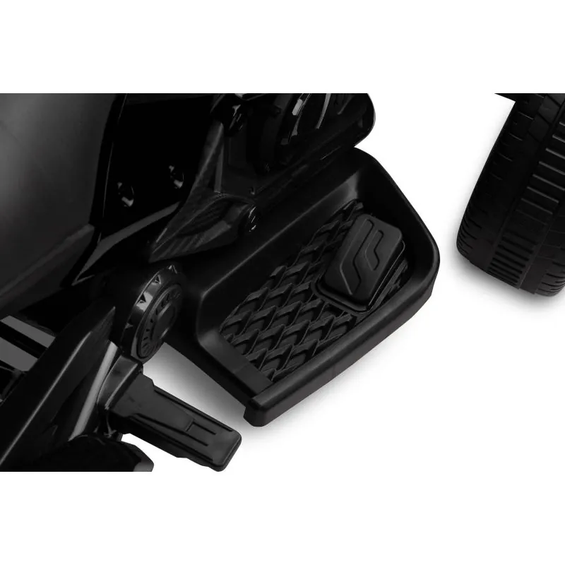 Efektīvs LED apgaismojums, ērts sēdeklis. Pārvietoties ar šo trīsriteni ir ērti un droši. Ar "Trice" mazie vadītāji var ātri iemācīties vadīt patstāvīgi, pateicoties akseleratora pedālim ar automātisko bremzi, 2 braukšanas ātrumiem un atpakaļgaitas pārnesumam. Braucot ir uzstādīts panelis ar melodijām, usb un bluetooth.Rūpīgi izgatavots no augstas kvalitātes materiāliem.Transportlīdzeklim ir 2 35 W motori un 12 V 4,5 Ah akumulators.Efektīvs LED apgaismojums - priekšējie un aizmugurējie lukturi un ciparnīca ar pulksteņiem.Skaidras instrukcijas un vienkārša montāža.Piemērots vecums no 3 līdz 8 gadiem.