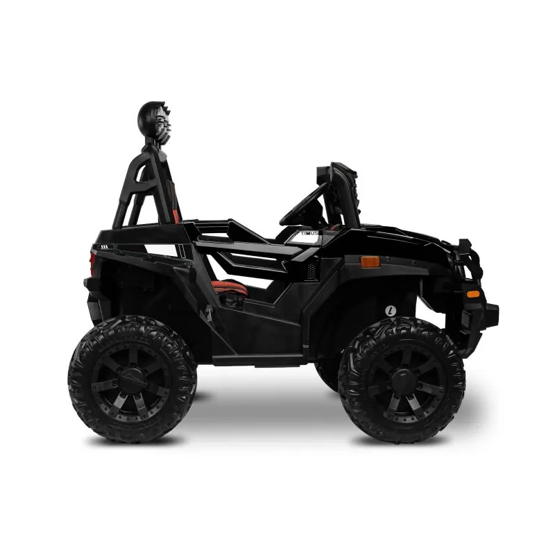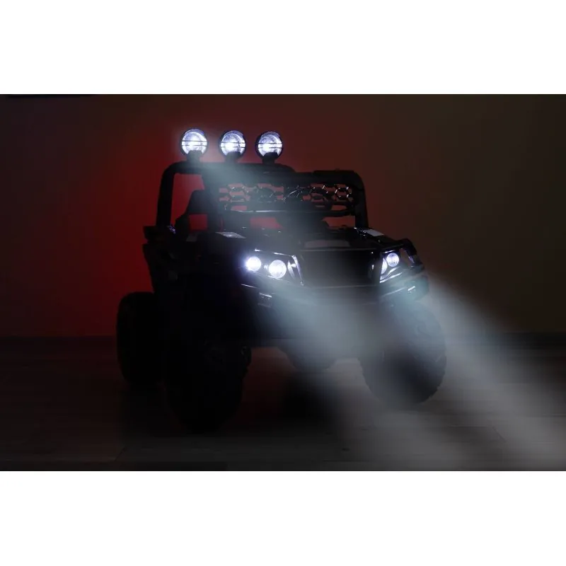 akumulatora automašīna ar modernu apvidus auto izskatudažādas spēles iespējas - bērns var patstāvīgi vadīt akumulatora automašīnu vai vecāks var to vadīt attālināti ar pultišūpošanās funkcijaplašs eko ādas sēdeklisEVA riteņi ar dziļu protektorutā sauktais lēnais starts – automašīna pakāpeniski paātrināsjostas drošības jostaautomātiskā bremze3 braukšanas ātruma režīmi ar tālvadības pultiatveramas durvisLED lukturi: priekšējie, aizmugurējie un papildu uz šķērssijasAizmugurējā bagāžnieka atverestūre ar skaņas signālu un pogām, kas atskaņo melodijasmultivides panelis ar USB un Bluetooth un iepriekš ielādētām melodijāmkrāsainas gaismas mirgo atbilstoši melodijām, kas atskaņotas no multivides paneļaizcila jauda, pateicoties četriem 12 V motoriem (45 W)