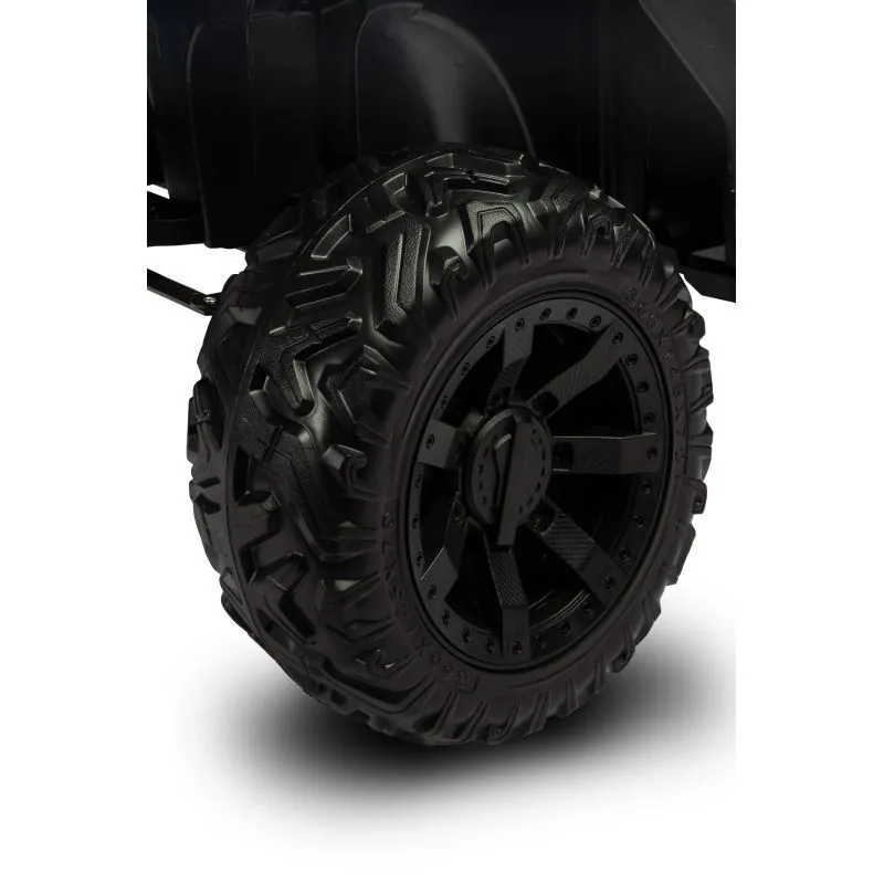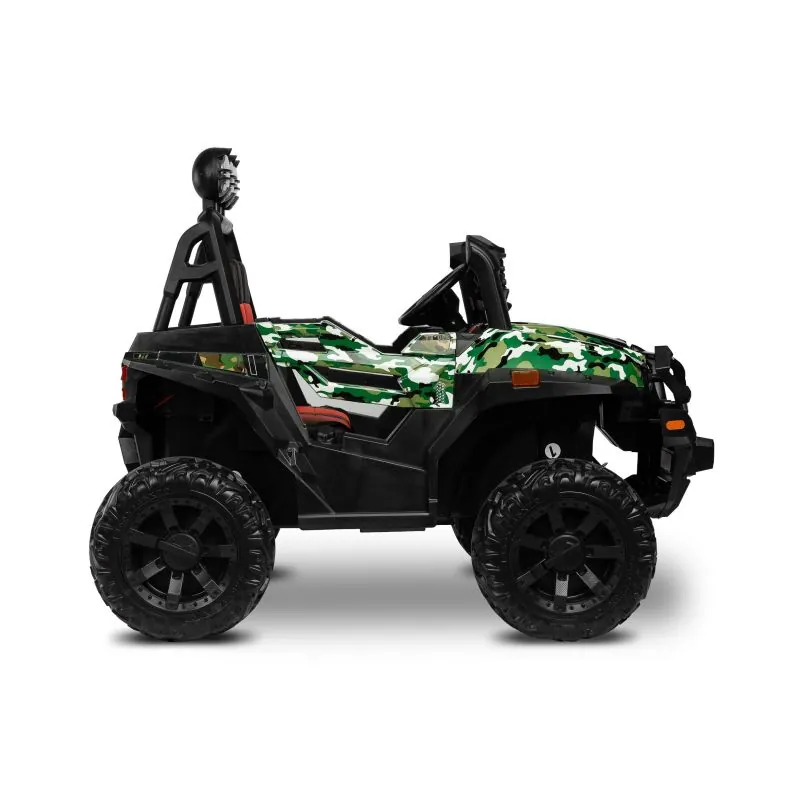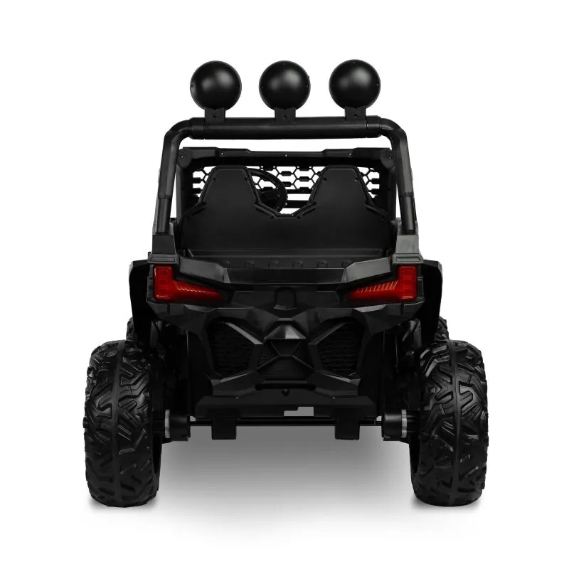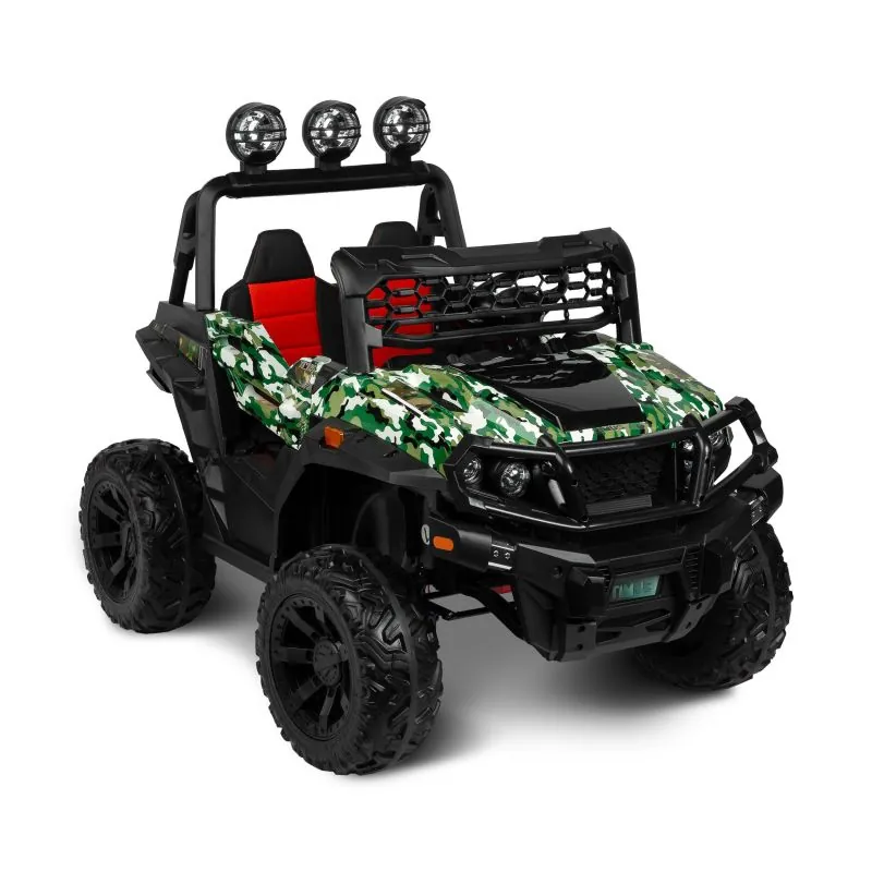 akumulatora automašīna ar modernu apvidus auto izskatudažādas spēles iespējas - bērns var patstāvīgi vadīt akumulatora automašīnu vai vecāks var kontrolēt to attālināti ar pultišūpošanās funkcijaplašs eko ādas sēdeklisEVA riteņi ar dziļu protektorutā sauktais lēnais starts – automašīna pakāpeniski paātrināsjostas drošības jostaautomātiskā bremze3 braukšanas ātruma režīmi ar tālvadības pultiatveramas durvisLED lukturi: priekšējie, aizmugurējie un papildu uz šķērssijasAizmugurējā bagāžnieka atverestūre ar skaņas signālu un pogām, kas atskaņo melodijasmultimediju panelis ar USB un Bluetooth un iepriekš ielādētām melodijāmmirgojošas krāsainas gaismas atbilstoši melodijām, kas atskaņotas no multimediju paneļaizcila jauda, pateicoties četriem 12 V motoriem (45 W)