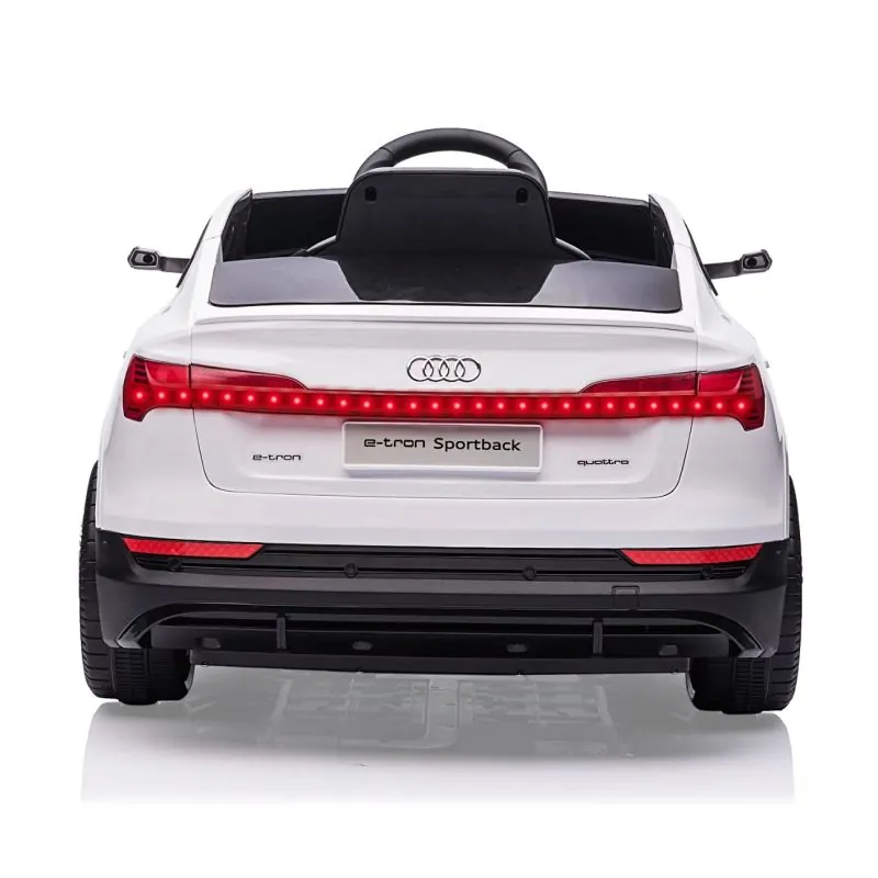 Transportlīdzeklim ir oriģināla "Audi" licence un tas ir slavenā "E-Tron Sportback" modeļa mini kopija, kas izceļas ar pievilcīgu izskatu un stilistiskiem elementiem. Ar akumulatoru darbināma automašīna, tāpat kā tās oriģināls, ir sportiska dizaina, izgatavota, ņemot vērā vissīkākās detaļas no augstākās kvalitātes materiāliem, kas izceļas ar lielu izturību un drošību. Vadiet eleganto Audi E-Tron Sportback un jūtieties kā profesionāls sporta automašīnas vadītājs.Vietu skaits - 1;Ar tālvadības pulti var izvēlēties 3 uz priekšu un 1 atpakaļ ātrumus;Spīdoši LED priekšējie un aizmugurējie lukturi;Apgaismots LED gaismas instrumentu panelis kabīnē;Ērta, liela sēdvieta ar drošības jostu;Mūzikas funkcijas kabīnē un USB, MP3, USB un TF karšu slotos: mūzikas atskaņošana, pasaku atskaņošana, skaļums +/-;5 dziesmas, nospiežot labo pogu uz stūres, skaņas signāls, nospiežot kreiso pogu uz stūres;Start/Stop slēdzis;Uz priekšu un atpakaļ slēdzis;Gāzes pedālis;Metāla riteņu asis;Tonēts priekšējais stiklsAtsperu šasijas amortizācija;Pagriežami priekšējie riteņi;Atveramas divas durvis, lai bērnam būtu ērtāk iekāpt un izkāpt;EVA plastmasas riteņi ar protektoru un sporta diskiem;Atļautā slodze 25 kg.;Vecums 3+;Barošana - akumulators (iekļauts komplektā);Tālvadības pults (iekļauta);Transportlīdzekļa ātrums 3-6 km/h;12V390x2 motors;Akumulators 12v4,5 Ah*1;Pilnīga akumulatora uzlāde ilgst apmēram 8 stundas.