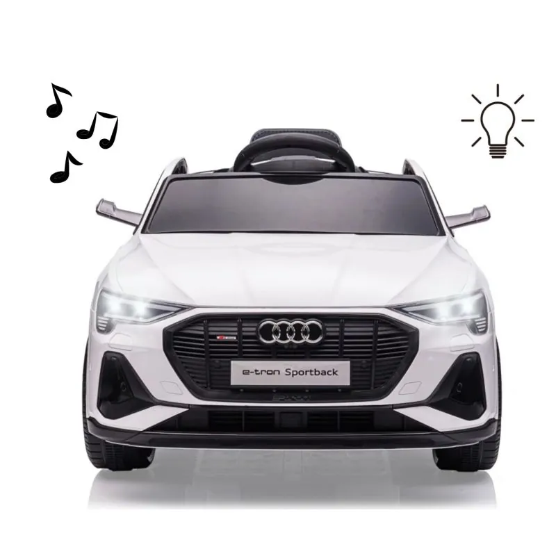 Transportlīdzeklim ir oriģināla "Audi" licence un tas ir slavenā "Audi E-Tron Sportback 4x4" modeļa mini kopija, vispievilcīgākais izskats un stilistiskās detaļas;Ar tālvadības pulti var izvēlēties 3 uz priekšu un 1 atpakaļ ātrumu;Pagriešanas funkcija pieejama, izmantojot tālvadības pulti;Spīdoši LED priekšējie un aizmugurējie lukturi;Transportlīdzekļa kreisajā pusē zem vāka ir uzlādes ligzda;Kabīnē apgaismoti LED pulksteņi;Ērts, liels, kontūrēts sēdeklis ar drošības jostu;Mūzikas funkcijas kabīnē un USB, MP3, USB un TF karšu ligzdās: mūzikas atskaņošana, pasaku atskaņošana, skaļums +/-;5 dziesmas, nospiežot labo pogu uz stūres, skaņas signāls - nospiežot kreiso pogu uz stūres;Start/Stop slēdzis;Uz priekšu un atpakaļ slēdzis;Mainīga 2 vai 4 riteņu piedziņa;Akseleratora pedālis;Metāla riteņu asis;Tonēts priekšējais stikls;Pagriežami priekšējie riteņi;Atsperu amortizācijas sistēma;Atveramas durvis, lai bērnam būtu ērti iekāpt un izkāpt;EVA riteņi ar protektoru un sporta diskiem;Atļautā slodze 25 kg.;Piemērots no 3 gadu vecuma;Paredzēts vienam bērnam;CE drošības sertifikāts;Barošana - baterija (iekļauta komplektā);Tālvadības pults (iekļauta).