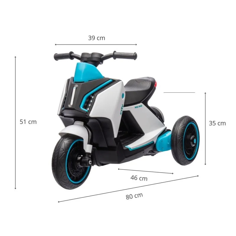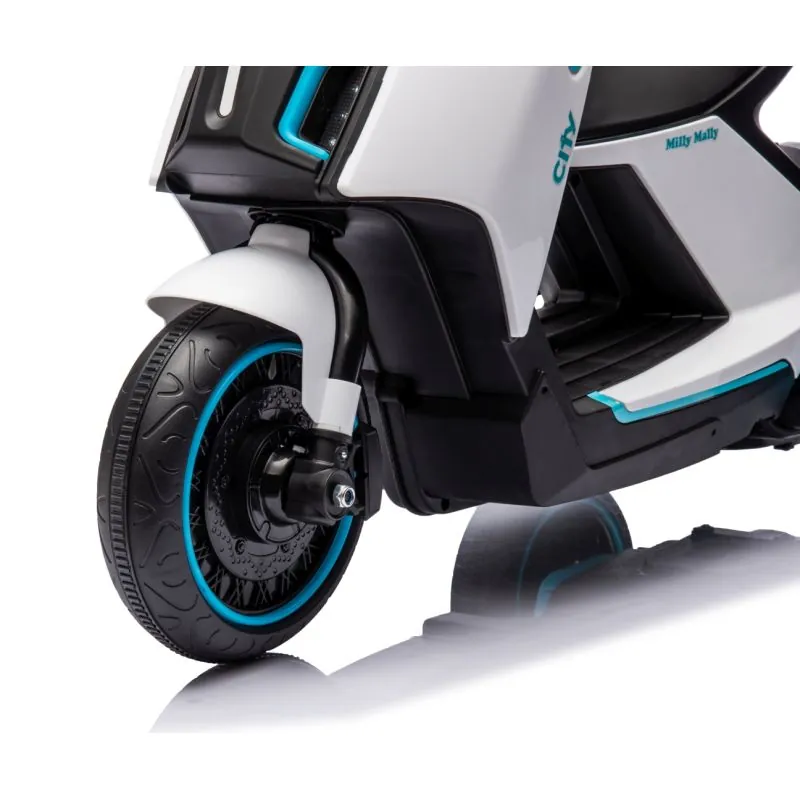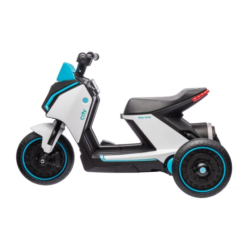 Pievilcīgs dizaina elektriskais trīsriteņu motocikls CITY. Piemērots bērniem no 24 mēnešiem.