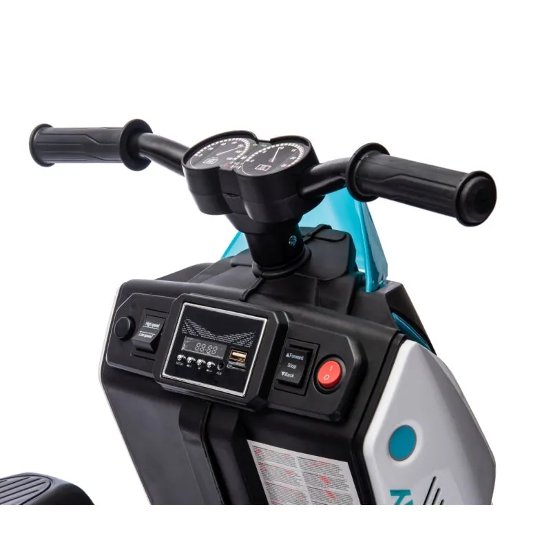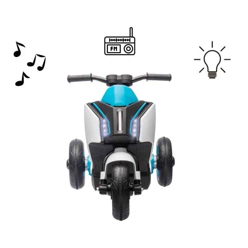 Šis motocikls apvieno mūsdienīgu izskatu ar funkcionalitāti;Tas nav tikai izklaide, bet arī motorisko prasmju un koordinācijas attīstīšana;City modelis ir izgatavots no kvalitatīviem, izturīgiem un drošiem materiāliem;Divi lieli aizmugurējie riteņi garantē stabilitāti;Ir mūzikas panelis, gaismas priekšā un aizmugurē;Divi ātrumi uz priekšu un viens atpakaļ;Vadība un braukšana veicina fizisko aktivitāti un drošu uzvedību;Uzlādējams akumulators;Piemērots bērniem no 24 mēnešiem;Izmanto pieaugušo uzraudzībā;Plastmasas riteņi ar protektoru;Motora iedarbināšanas skaņa;FM radio, MP3, USB, AUX panelis;Ātrums 1-3 km/h;CE drošības sertifikāts;Pilna uzlāde ilgst apmēram 8 stundas;
