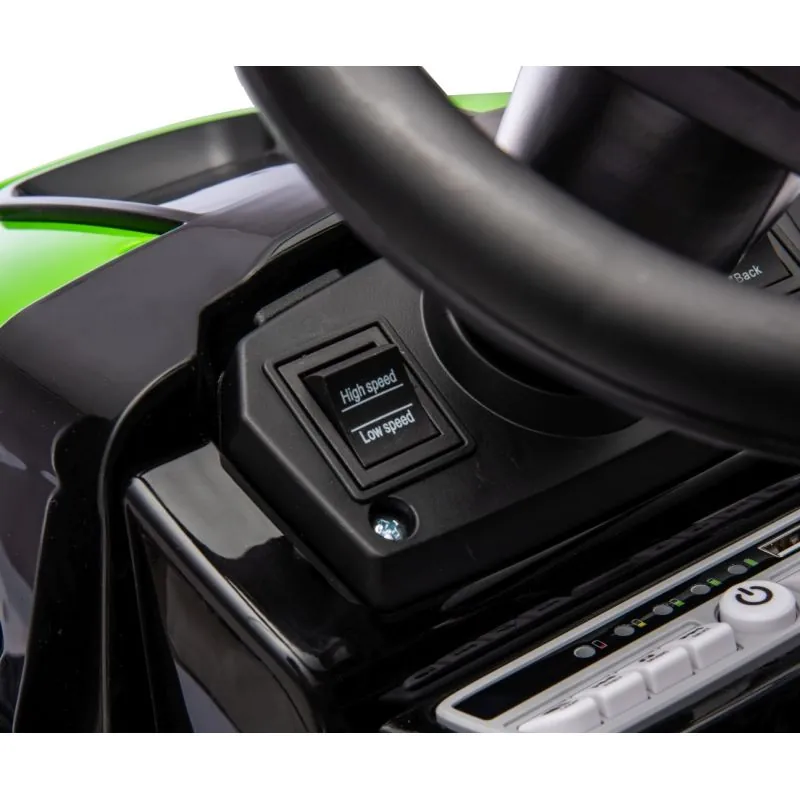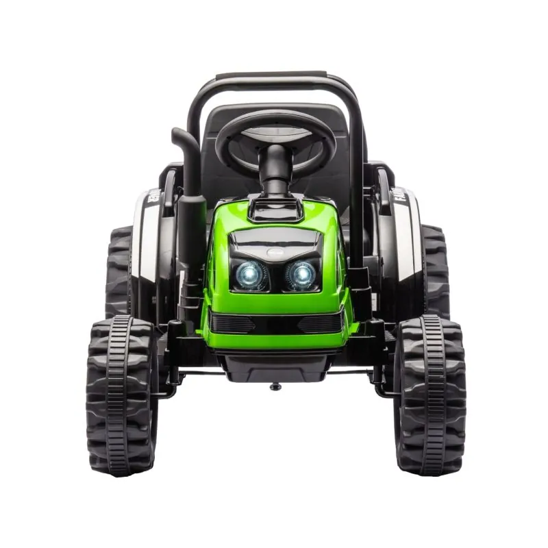 Ieteicams bērniem no 3 gadu vecuma;Traktoram ir piekabe, kas piešķir vēl vairāk rotaļīguma;Metāla aizsargstieņi priekšā un aizmugurē;Dūmvada izplūdes caurules imitācija, traktora motora rūkoņa - tas viss ļauj mazajiem zemniekiem iegrimt fantāzijā;Barošanas slēdzis ieslēdz traktora motora rūkoņu;Divi motori ļauj sasniegt 3-5 km/h ātrumu;Traktors nodrošina drošu un vienmērīgu braukšanu;Inovatīva šarnīrveida stūrēšanas sistēma kopā ar vadāmu priekšējo asi;Attīsta smalko motoriku un roku un acu koordināciju;Aizmugurējais āķis paredzēts piekabes piestiprināšanai, kas piedāvā vairāk iespēju jautri pavadīt laiku;Augstas kvalitātes materiāli un pievilcīgs izskats;Mūzikas panelis: radio, MP3, USB Bluetooth;Produkts tiek izmantots pieaugušo uzraudzībā;2 x 35W 12V motori;Atverams pašizgāzējs;Priekšējie un aizmugurējie lukturi;Riepas ar bezceļa protektoru;Riepu diametrs 31 cm.;Akseleratora pedālis;Pārnesumi: Uz priekšu, atpakaļ un neitrāls;Lēnas un ātras braukšanas slēdzis;Maksimālā slodze 30 kg.;Tālvadības pults.