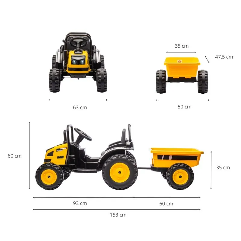 Elektromobilis traktors ar piekabi, kurā bērns jutīsies kā pieaugušais lauksaimnieks. Ieteicams bērniem no 3 gadu vecuma.