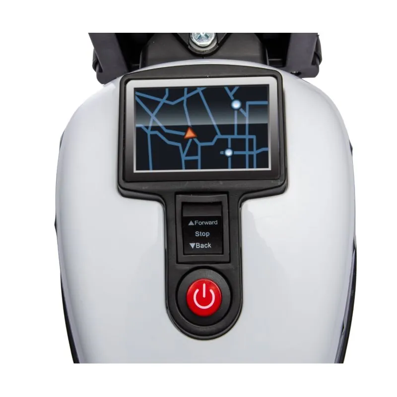 Start/Stop poga;Pārnesumi: uz priekšu, atpakaļ un neitrāls;Spīdošs priekšējais lukturis;Metāla riteņu asis;Sānos uzstādīti spoguļi;Ērts sēdeklis;Akseleratora pedālis;Plastmasas riteņi ar protektoru;Uzlādējams akumulators;Ātrums: 1-3 km/h;Motora jauda 15W.Maksimālā slodze 25 kg.;CE drošības sertifikāts;