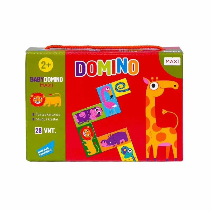 Galda spēle puzle DOMINO mazajiem paredzēta bērniem no 2 gadiem. Spēles detaļas izgatavotas no kartona. Spēles mērķis ir secīgi likt un savienot dzīvnieciņus. Komplektā 28 detaļas.