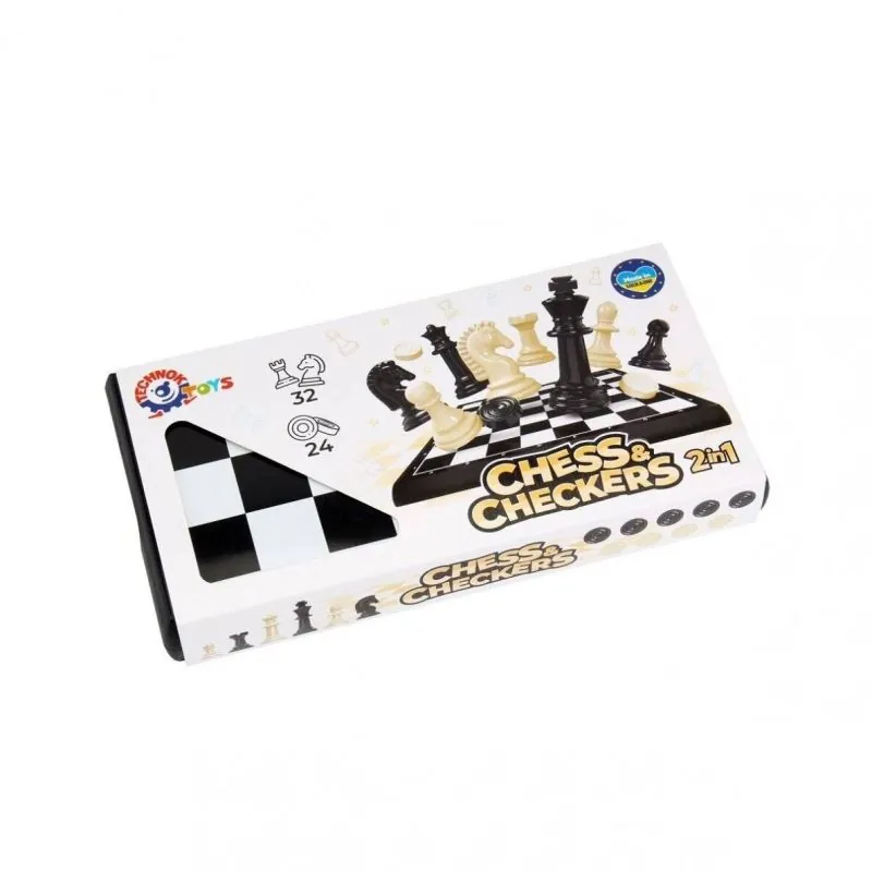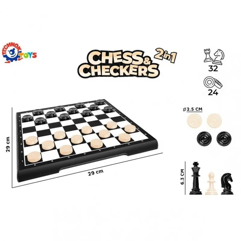 Komplektā ietilpst šahs un dambrete lielā plastmasas kastē, kas aizveras ar ērtu aizdari. Ērti uzglabāt un nepazaudēt figūras. No metāla plāksnes izgatavotais dambretes dēlis ir gluds un spīdīgs. Šaha dēļa izmērs ir 28*28 cm.Figūras ir lielas un ērtas, klasiskā dizaina. Figūras "karalis" augstums – 65 mm, "bandinieks" – 35 mm. Dambretes diametrs ir 25 mm.Šahs un dambrete palīdz attīstīt koncentrēšanos, spēju pārvarēt grūtības un plānot savas darbības, loģiski domāt.Vecums: no 5 gadiem.Materiāls: plastmasa, metāls.Pilna komplektācija: plastmasas kaste ar metāla dēli, šahs - 32 figūras, dambrete - 24 gab.