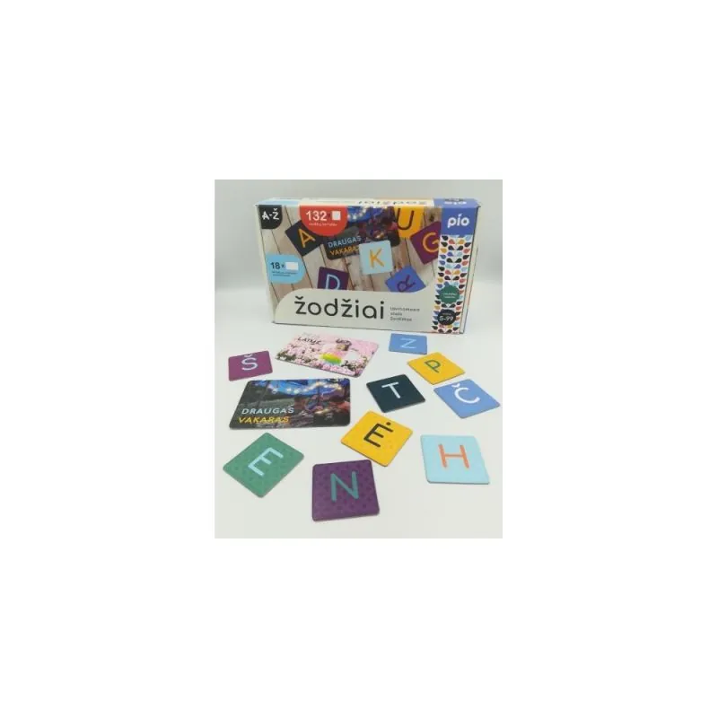 Spēlē ir 18 kartītes – paraugi un 132 burtu kartītes.