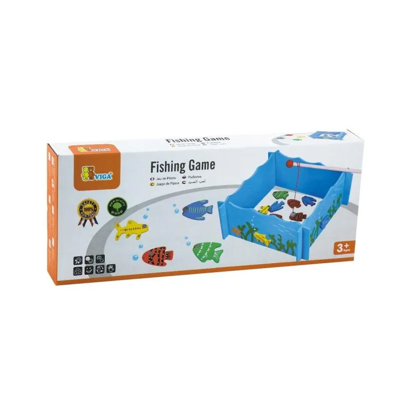 Spēle paredzēta 4 cilvēkiem. Spēles mērķis ir noķert pēc iespējas vairāk krāsainu zivju, kas peld ezerā;Attīsta motorisko koordināciju;Māca pacietību un koncentrēšanos;Var spēlēt līdz 4 spēlētājiem;Komplektā ietilpst: 4 magnētiskās makšķerītes, 20 krāsainas magnētiskās zivtiņas, koka kastīte - ezera imitācija;Piemērots bērniem no 3 gadu vecuma.