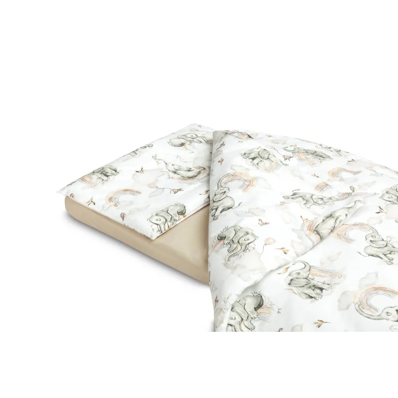 100 % kokvilnas pārvalki segai un spilvenam. Izmēri 100x135; 40x60 cm. Palags ar gumiju 120x60 cm.