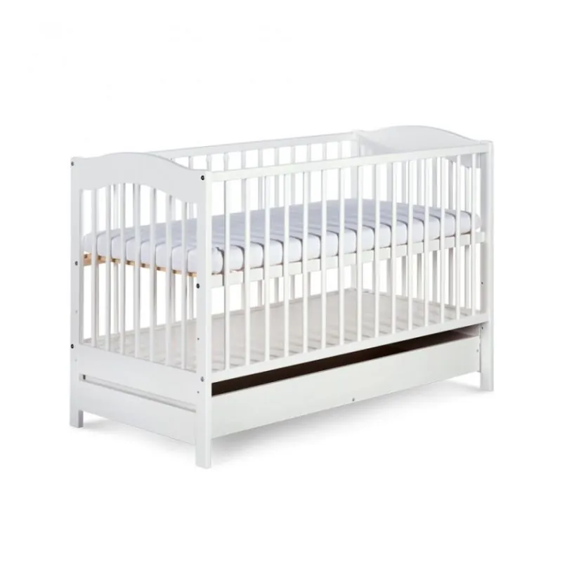 Koka gultiņa zīdaiņiem izgatavota no priedes;Baltā krāsā;Gultiņas izmēri: 120*60;Trīs līmeņu grīdas stiprinājums;Ar dekoratīviem galiem;Ar trim izņemamiem stieņiem, lai paaugušais mazulis pats varētu izkāpt;Slēgts atvilktne jūsu mantām;