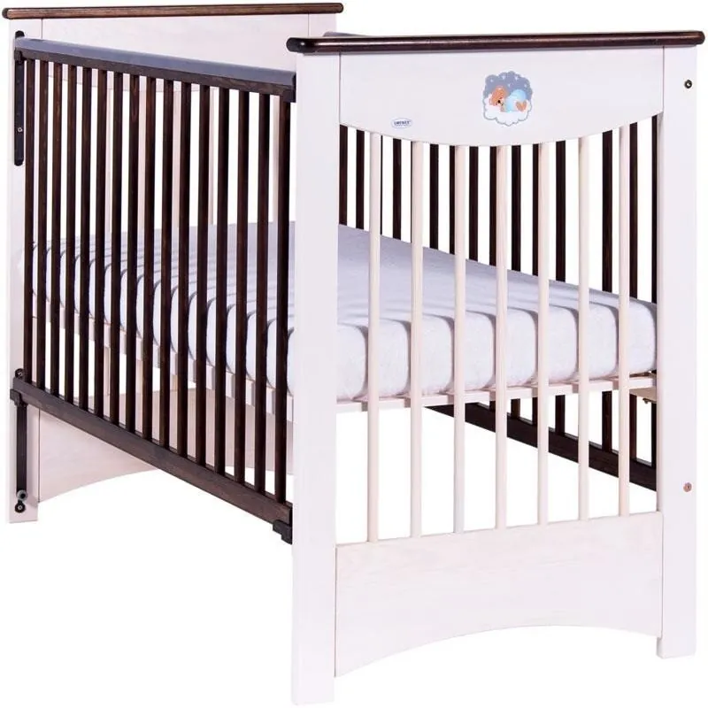 Gultiņa izgatavota no priedes;Apaļi stieņi bērna drošībai;Gultiņa ar nolaižamu sānu;Iespēja uzstādīt riteņus vai šūpoles (komplektā nav iekļauti);Plastmasas aizsargi uz gultiņas sāniem;Regulējams pamatnes augstums (3 pozīcijas);Matraču izvēle gultiņai pieejama ŠEIT
