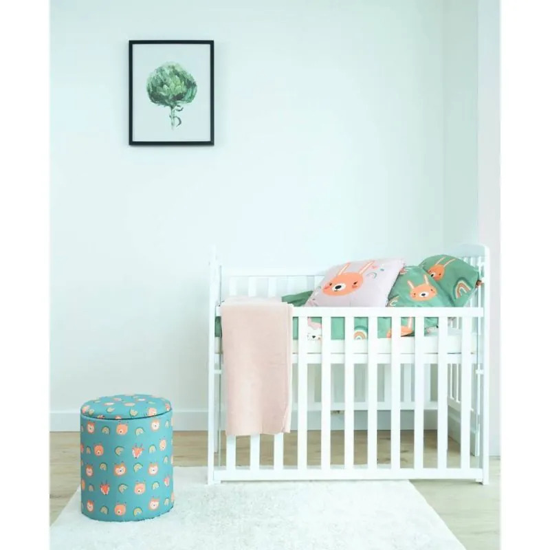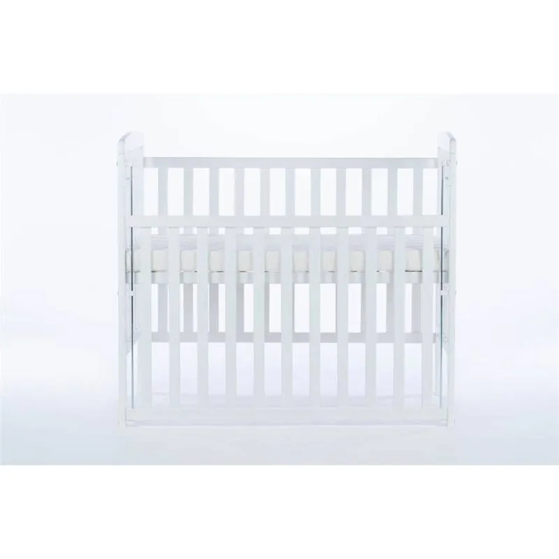 Priežu koka gultiņa;Regulējams pamatnes augstums (3 pozīcijas);Mazā izmēra gultiņa, kas taupa vietu.Nolaižama sānu mala.