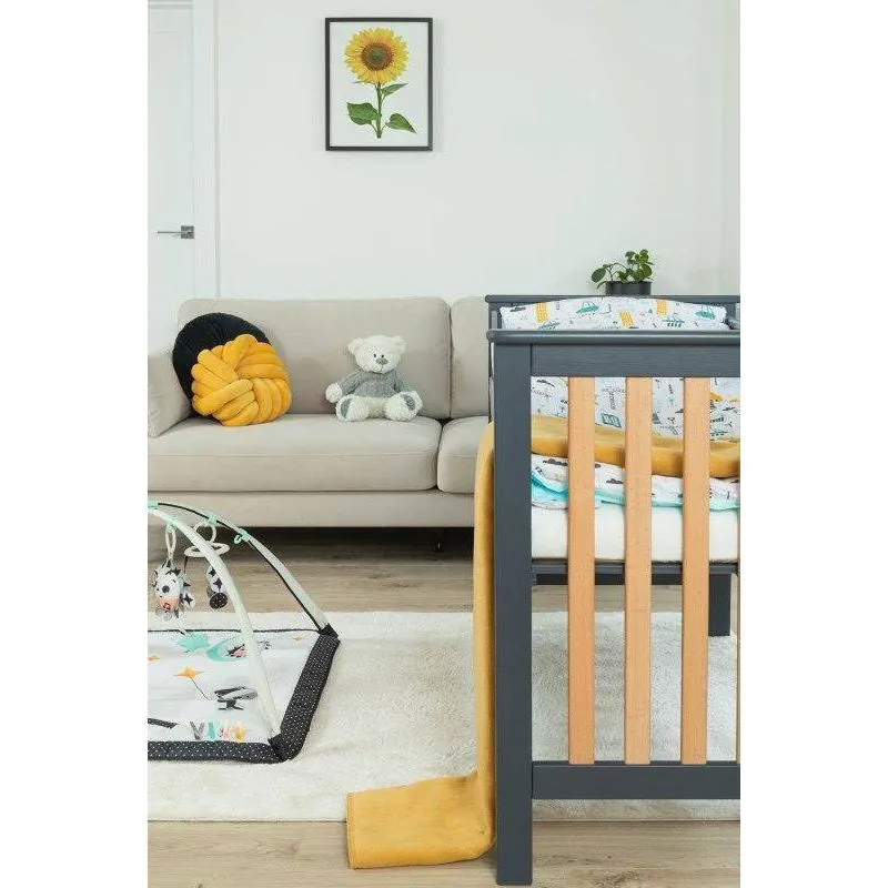 Priežu gultiņa;Plastmasas aizsardzība uz sāniem;Plakanas pakāpieni 32 mm biezumā, 5,5 cm attālumā viena no otras;Regulējams dibena augstums (3 pozīcijas);Nolaižama sāna;Matraču gultiņai varat izvēlēties ŠEIT