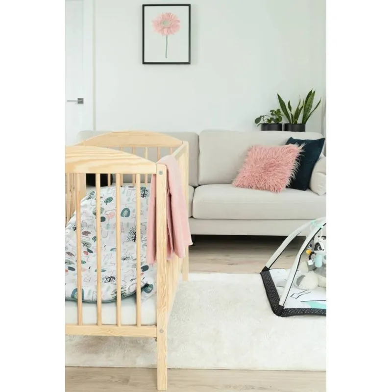 Priežu gultiņa;Apaļi stieņi nodrošinās bērna drošību;Regulējams pamatnes augstums (3 pozīcijas);Izņemami stieņi, lai pieaudzis bērns varētu pats iekāpt/izkāpt no gultiņas;Nolaižama sāna mala;Iespēja uzstādīt riteņus vai šūpoles (komplektā nav iekļauti);Matraču gultiņai varat izvēlēties ŠEIT