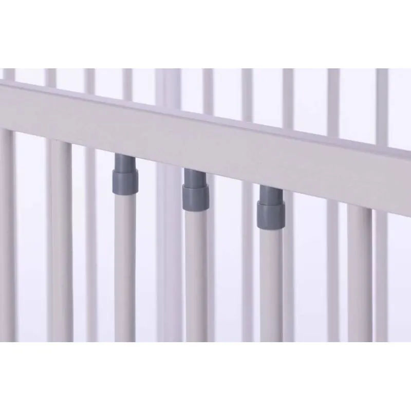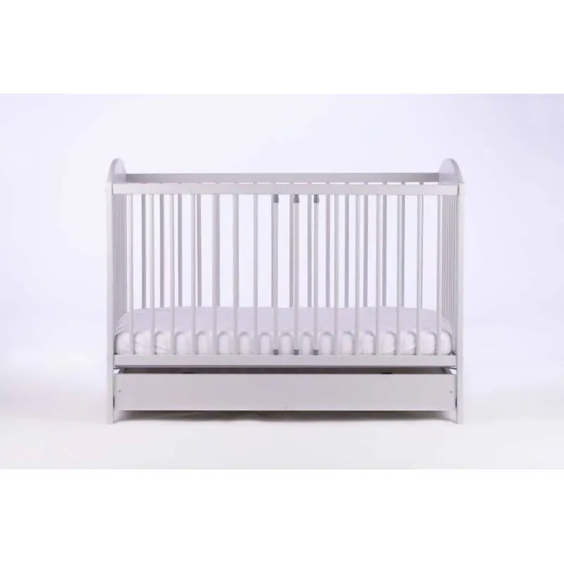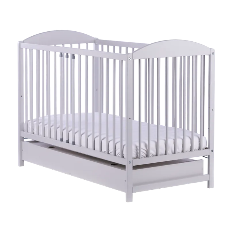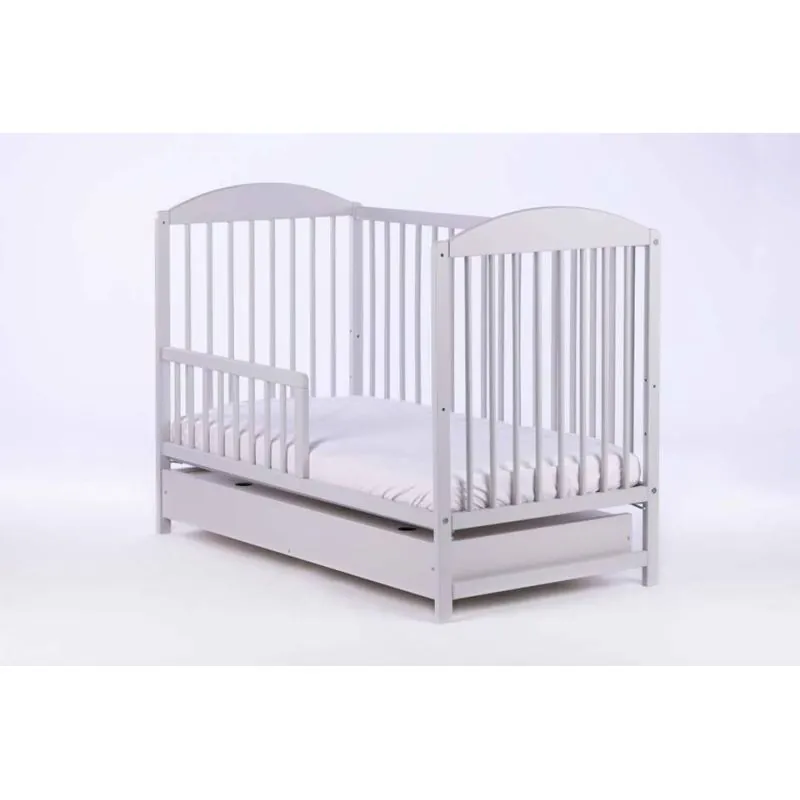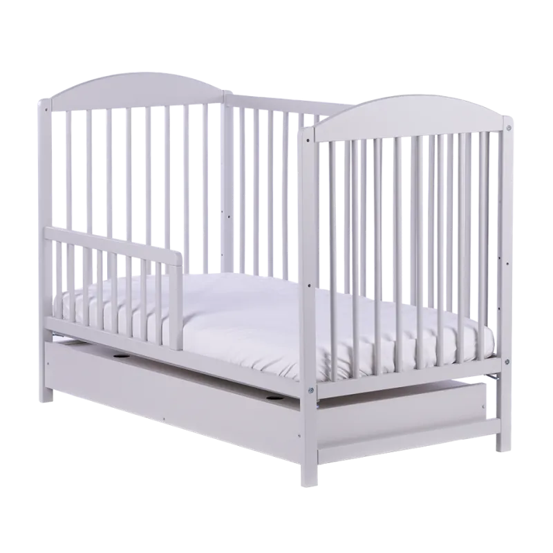 Priežu masīvkoka gultiņa;Apaļi 16 mm diametra stieņi, 5,5 cm attālumā viens no otra.Stieņi nodrošinās bērna drošību;Regulējams pamatnes augstums (3 pozīcijas);Noņemama sānu mala.Izņemami stieņi, lai pieaudzis bērns varētu pats iekāpt/izkāpt no gultiņas;Matrača izvēli gultiņai varat veikt ŠEIT