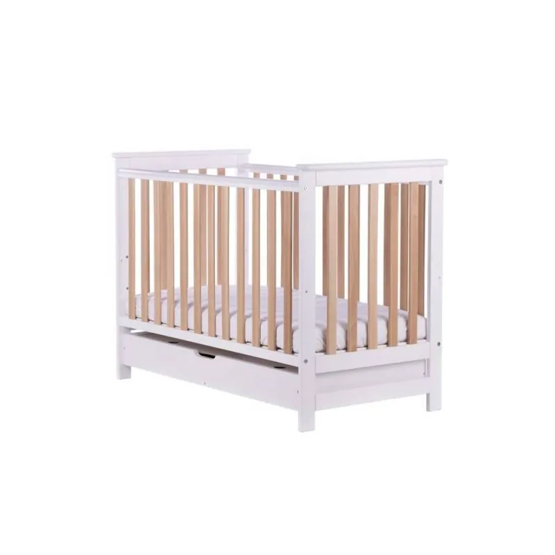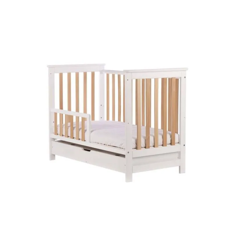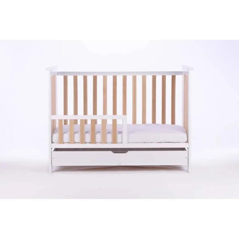 Priežu masīvkoka ar dižskābarža koka gultiņa;Stieņi nodrošinās bērna drošību;Regulējams pamatnes augstums (3 pozīcijas);Noņemama mala;Slēgta, liela atvilktne;Izņemami stieņi, lai pieaudzis bērns varētu pats iekāpt/izkāpt no gultiņas;Matraču gultiņai varat izvēlēties ŠEIT