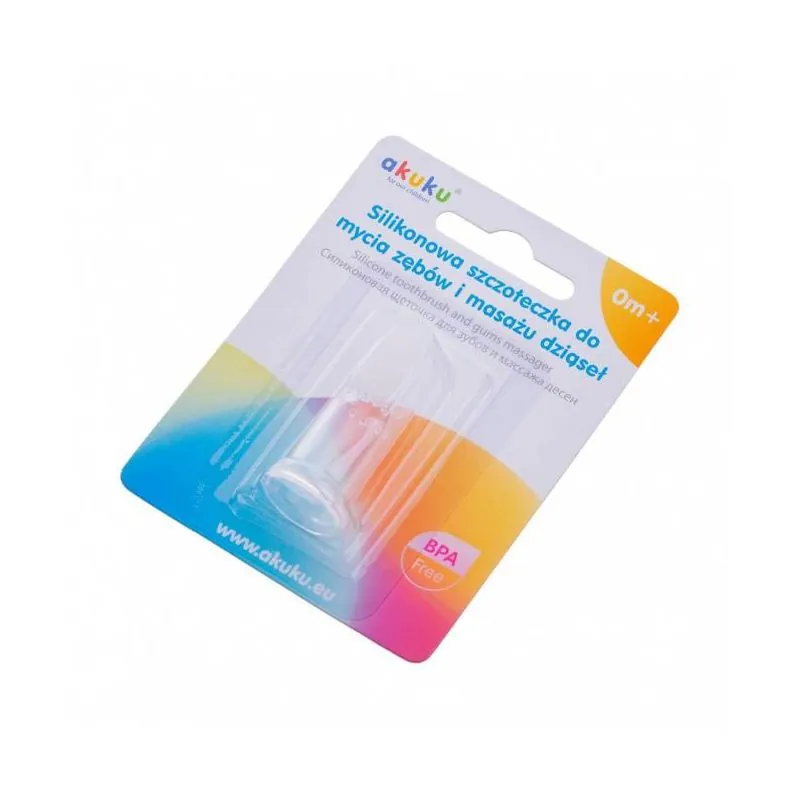 Silikona zobu birste, kas paredzēta pirmo zobu tīrīšanai un smaganu masēšanai.