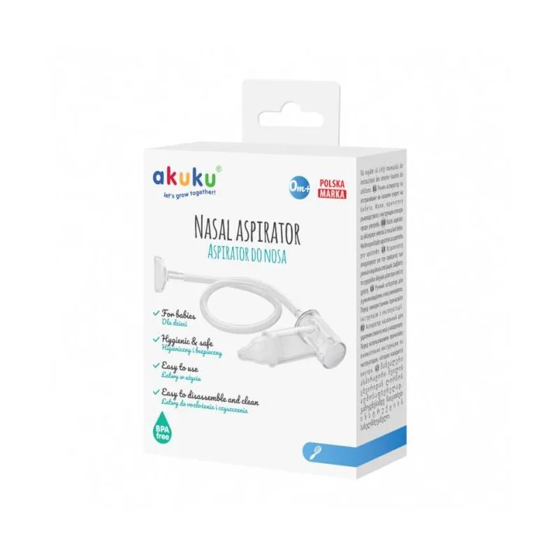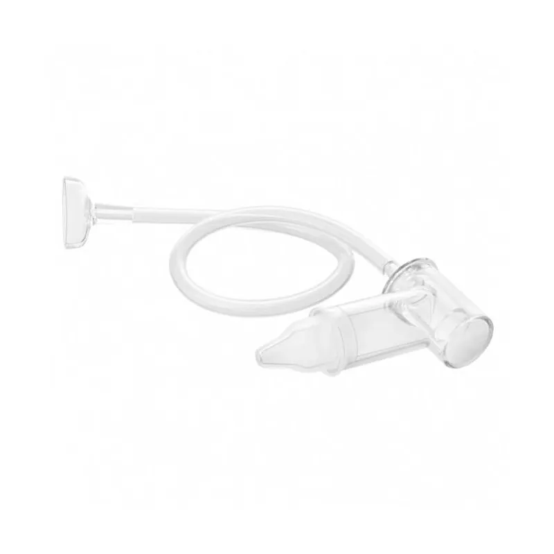 Novietojiet mazuli pus sēdus stāvoklī, ar muguru un galvu atbalstoties uz apakšdelma vai sēžot.Salieciet visus aspiratora elementus, kā parādīts attēlā.Ievietojiet plastmasas aspiratora galu mutē.Silikona uzgali uzlieciet uz bērna nāss.Izdalījumu izsūkšana nedrīkst ilgt ilgāk par 5 sekundēm.Atkārtojiet sekrēta izņemšanas procesu, līdz sekrēts pārstāj plūst rezervuārā.Izjauciet aspiratoru un labi izmazgājiet.Pirms un pēc katras lietošanas aspirators jāsterilizē vārošā ūdenī vai sterilizējošā šķīdumā.Ļoti uzmanīgi ieteicams lietot aspiratoru, ja degunā ir brūces vai hemofilija.Nekad neatstājiet mazuli vienu, kad lietojat aspiratoru.Nelieciet mikroviļņu krāsnī.