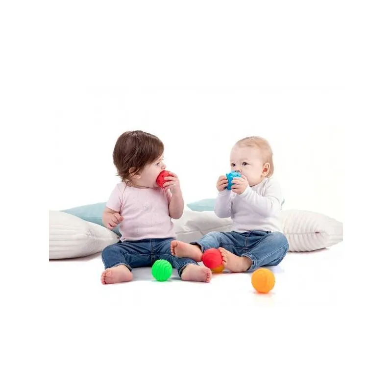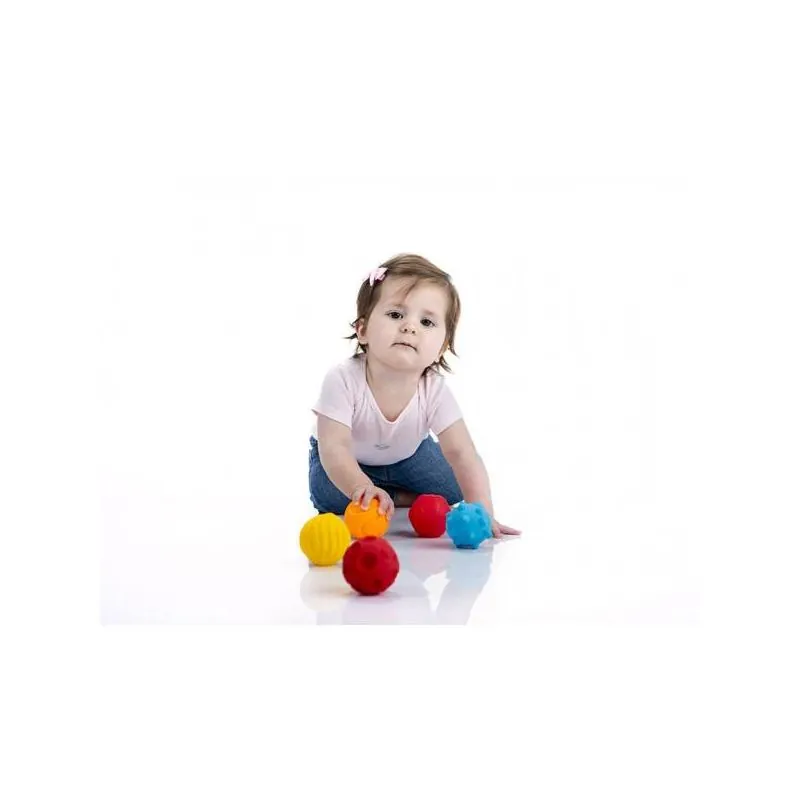 Tiek izmantotas dažādas materiālu faktūras, kas nodrošina taustes sajūtas, kas attīsta plaukstas un pirkstu kustību precizitāti;Stimulē jušanas receptorus;Attīsta satveršanas prasmes;Stimulē redzes sajūtas;Ir neaizstājami rāpošanas posmā, mazulis var ripināt bumbiņas;Noderīgi arī zobu šķilšanās laikā, jo bumbiņu faktūra masē smaganas.