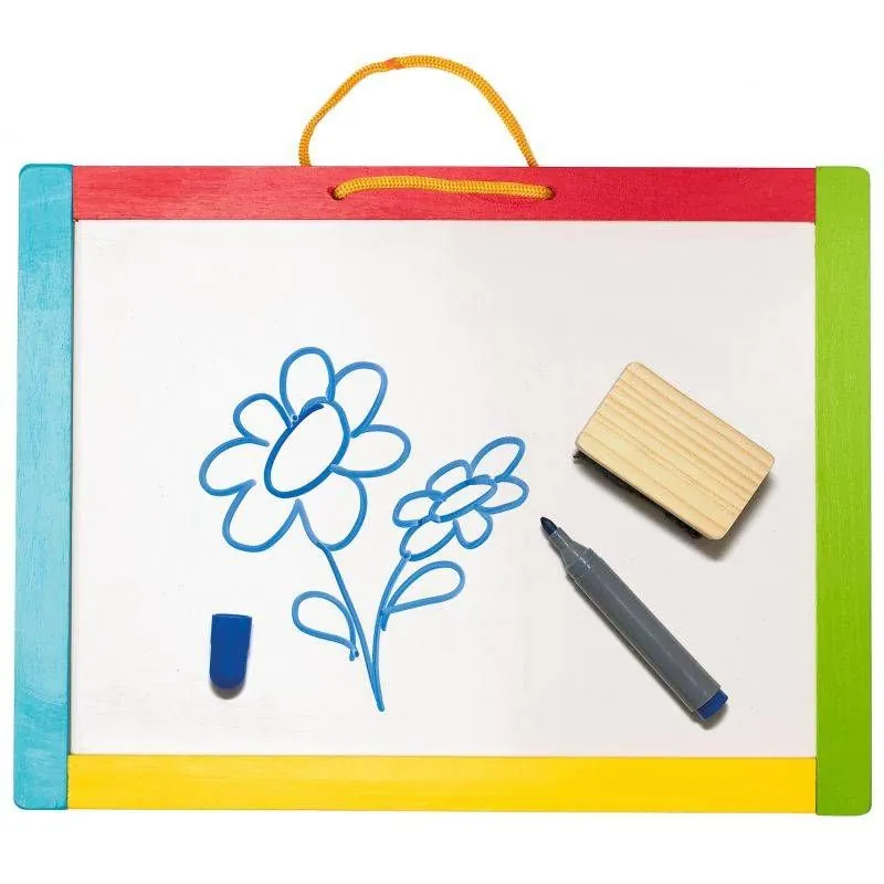 Bērnu magnētiskā divpusējā tāfele ar alfabēta burtiem.Komplektā atradīsiet 39 burtus, kurus varēsiet pielīmēt pie tāfeles.Šī tāfele ir piekarama, tāpēc viegli var mainīt tās puses, lai zīmētu uz vienas puses un sakārtotu burtus uz otras.Platums: 40 cm. Augstums: 30 cm.Krītiņu iepakojums39 burti ar cipariem