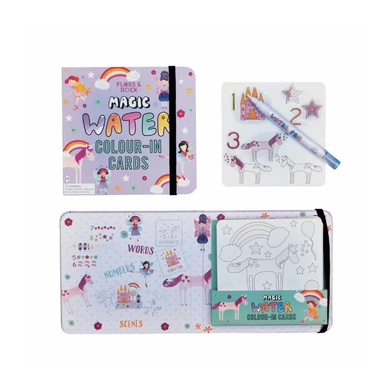 Aizpildiet marķieri ar ūdeni un zīmējiet uz kartītēm, uzklājot ūdeni, parādās krāsas. Kad izžūst, krāsas pazūd. Un atkal viss no jauna. Iepakojums ir ērts nēsāšanai, ceļošanai. Kartītes var krāsot daudzas reizes!