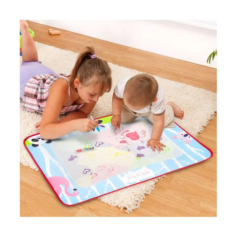 Akuku zīmēšanas ūdens paklājiņš ar speciālu flomāsteri ar ūdeni ļauj radīt izcilus zīmējumus.