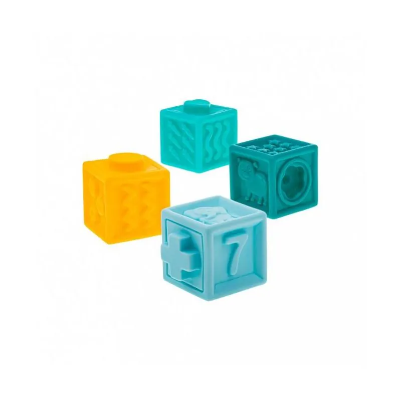 Dažādās tekstūras katrs klucītis nodrošina bērnam atšķirīgu sensoru pieredzi.Dažādas formas un to izliektie gali māca bērnu saskaņot un savienot elementus.Bagātīgas krāsas attīsta bērna sajūtas, dažādas formas, figūras, dzīvnieki un cipari veicina mazuli radoši spēlēties.Izmantotie dažādie materiālu faktūras nodrošina taustes sajūtas, kas attīsta plaukstas un pirkstu kustību precizitāti.Stimulē sensoros receptorus.Attīsta satveršanas prasmes.Stimulē redzes sajūtasIr neaizstājami rāpošanas posmā, mazulis var ripināt klucīšus.Noderīgi arī zobu šķilšanās laikā, jo bumbiņu faktūra masē smaganasVisas daļas ir no augstākās kvalitātes apstiprinātiem materiāliem.Sastāvā nav ftalātu, bisfenola A (BPA), smago metālu.