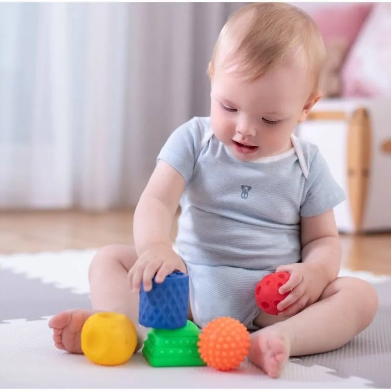 Izmantoti dažādi materiālu faktūras, kas nodrošina taustes sajūtas, kas attīsta plaukstas un pirkstu kustību precizitāti;Stimulē maņu receptorus;Attīsta satveršanas prasmes;Stimulē redzes sajūtas;Ir neaizstājami rāpošanas posmā, mazulis var ripināt bumbiņas;Arī noderīgi zobu šķilšanās laikā, jo bumbiņu faktūra masē smaganas.
